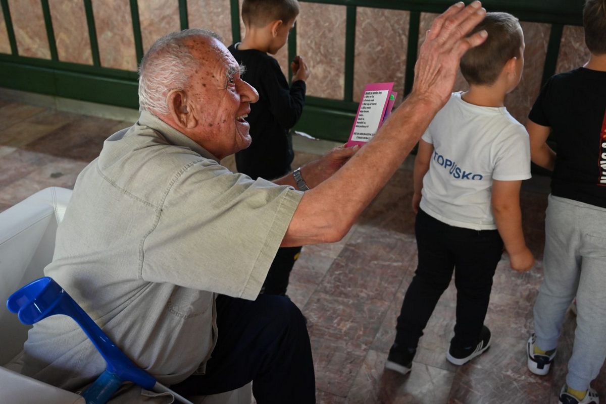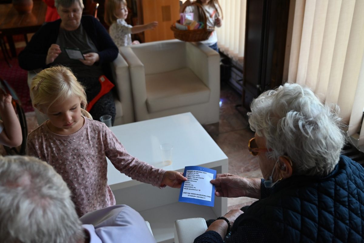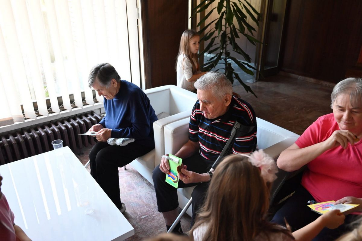 Korisnike Doma za starije osobe Glina i Petrrinja, obradovala su i djeca Dječjeg vrtića Topusko, koja su izradila i donijela čestitke za njihov dan.
