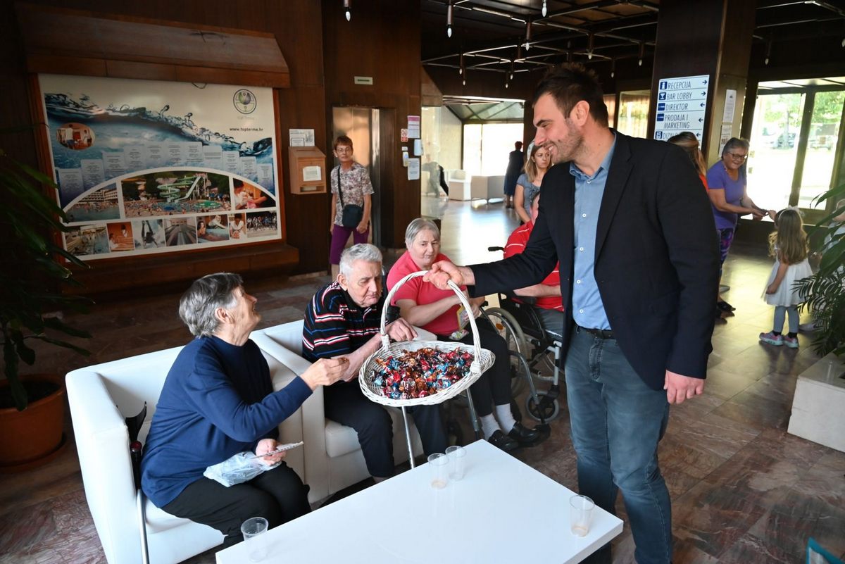 Župan Ivan Celjak se, tijekom obilaska Topuskog, susreo i s korisnicima Doma za starije osobe Glina i Petrinja, koji su, nakon potresa zbrinuti u hotelu Lječilišta Topusko.