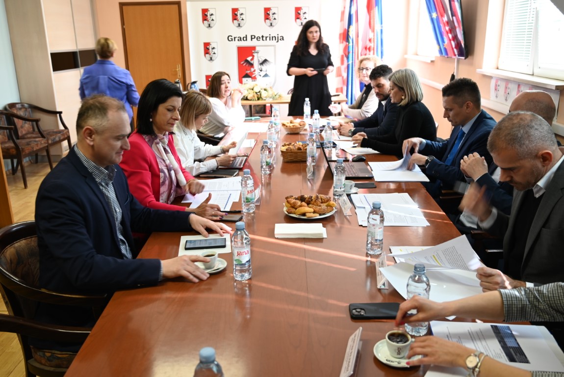 Posjet Petrinji završio je radnim sastankom s gradonačelnicom Petrinje i suradnicima, a nastavljen je u Sisku gdje se u ulici Oktavijana Augusta obišla višestambena zgrada na kojoj je završena konstrukcijska obnova.