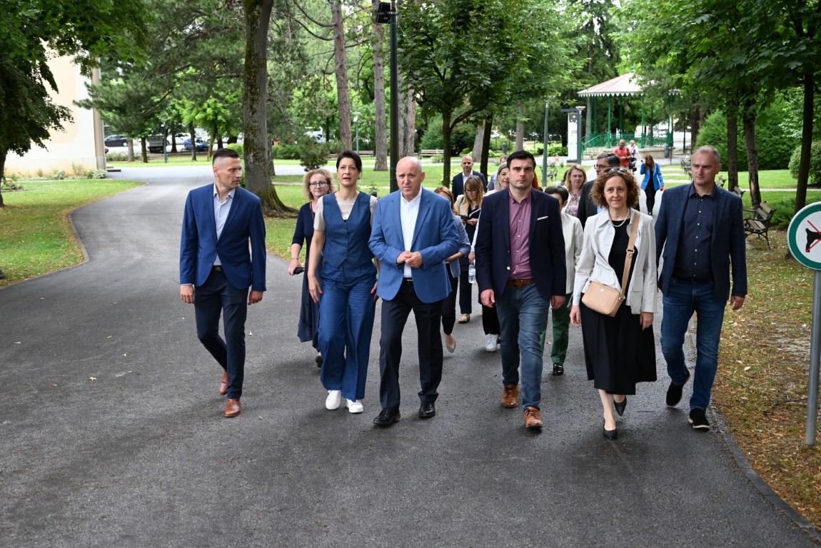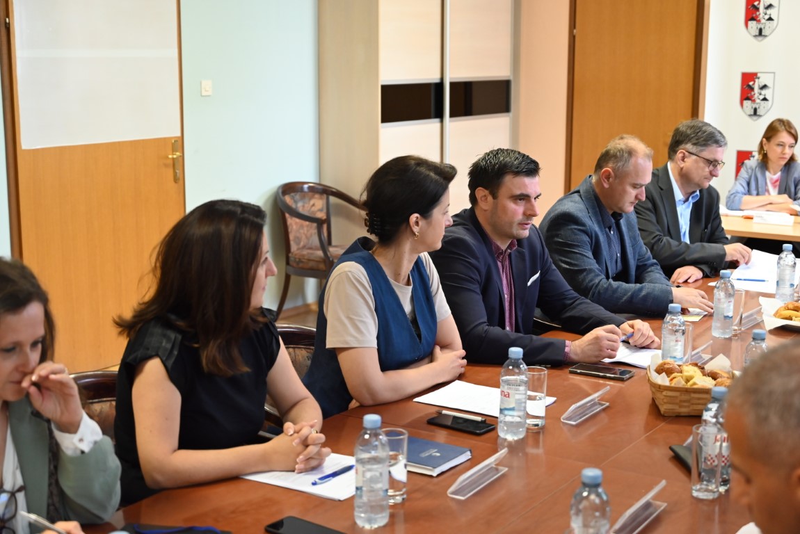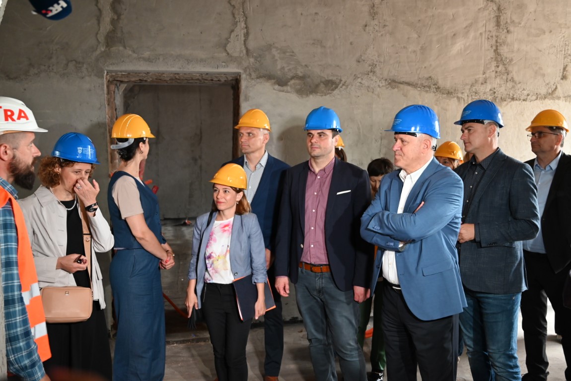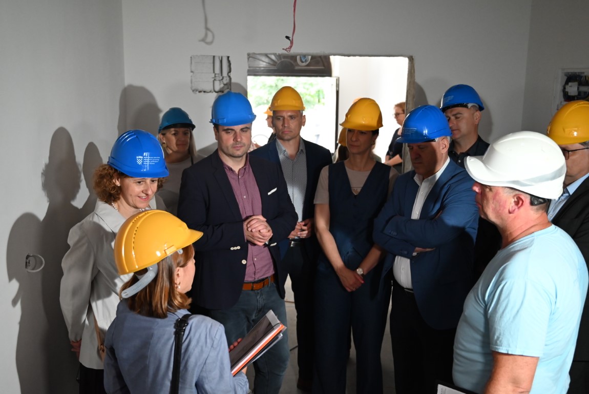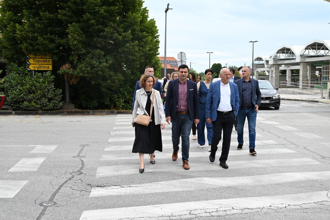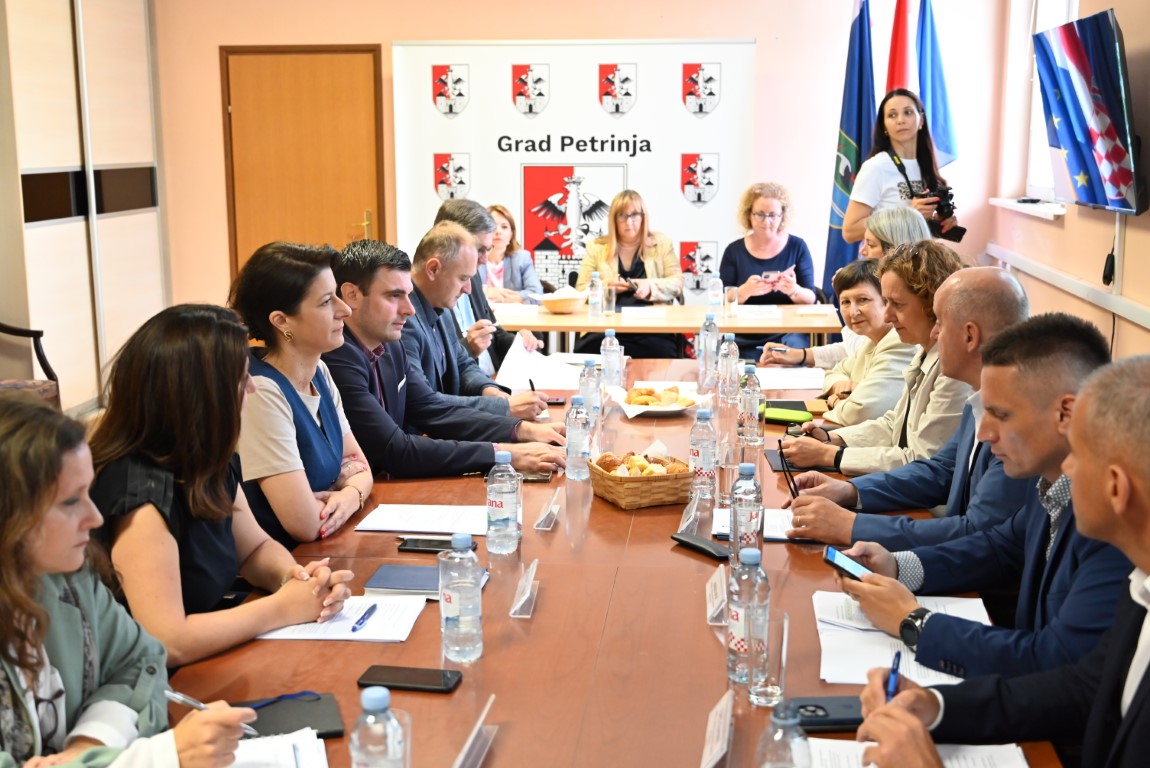 Posjet Petrinji je započeo radnim sastankom na temu obnove zgrada oštećenih potresom, a nastavljen obilaskom gradilišta obnove javnih i privatnih stambenih objekata.