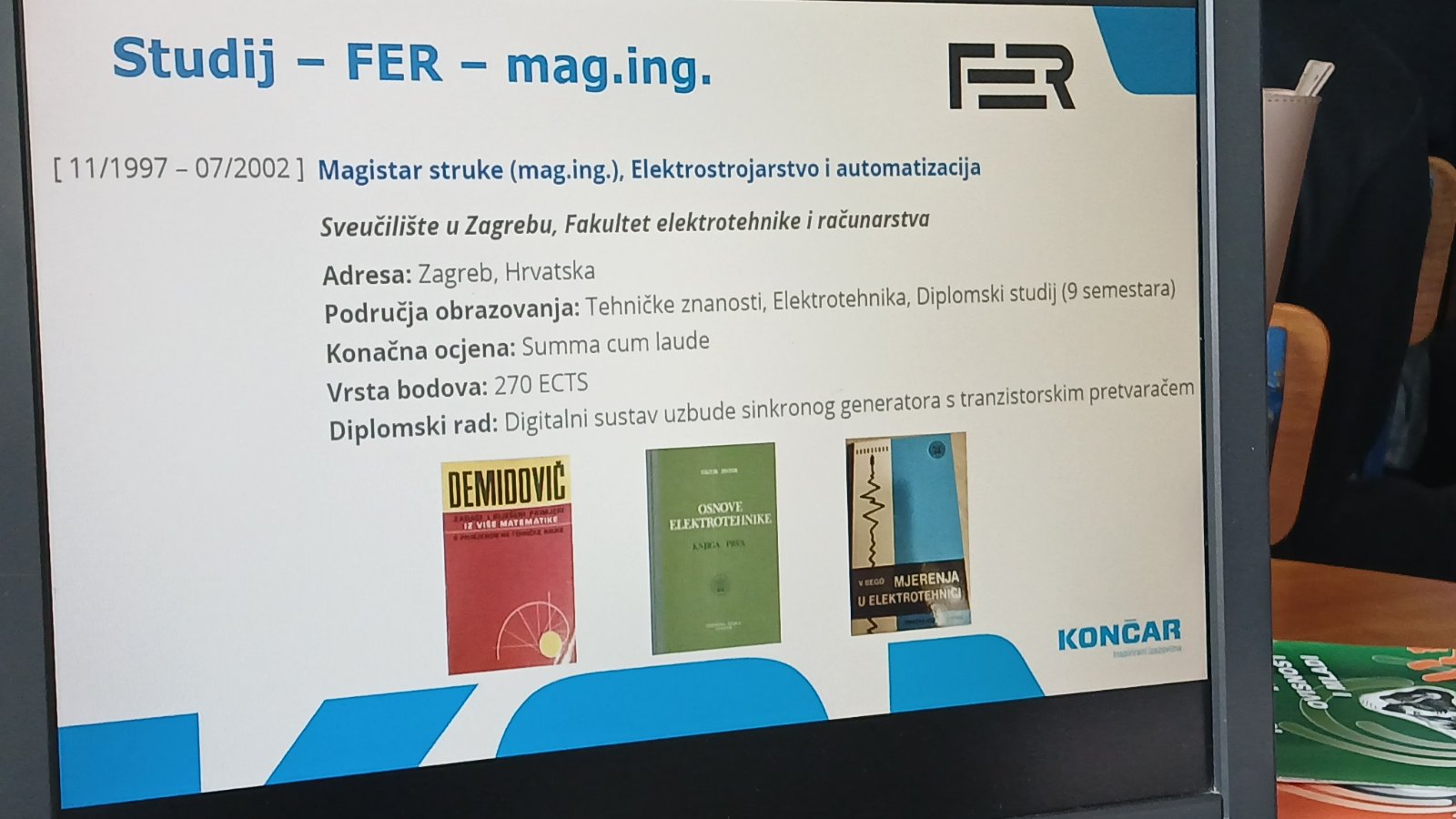 Macan je učenicima Tehničke škole na zanimljiv način ispričao svoj životni put. Od pohađanja Tehničke škole, preko studentskih dana na zagrebačkom FER-u do stjecanja doktorata i rada na različitim pozicijama u nekoliko tvrtki. Tu je Macan istaknuo rad za Rimac automobile, te svoju današnju poziciju direktora u Končar INEM-u.