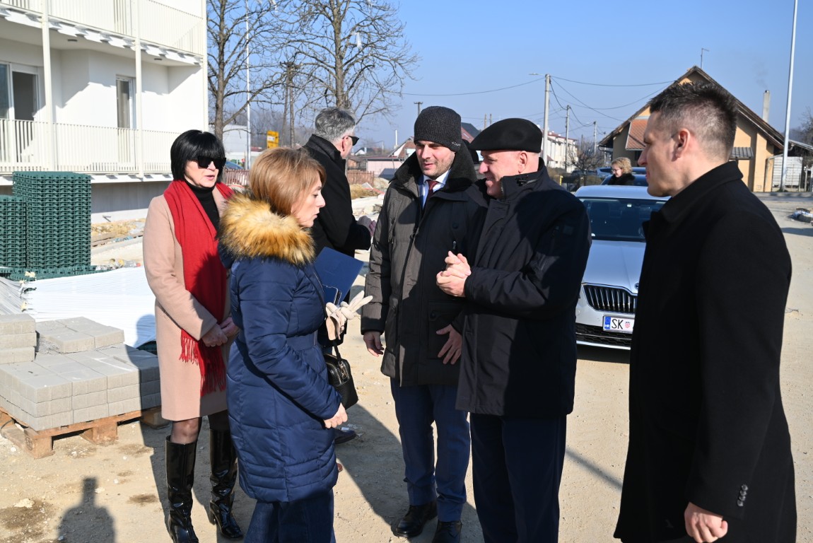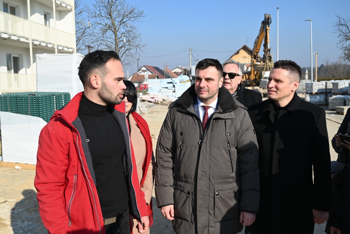 Tijekom današnjeg posjeta, ministar Bačić, župan Celjak i državni tajnik Orlić obišli su gradilište šest višestambenih zgrada za privremeni smještaj u Capraškoj ulici u Sisku, koje se grade sredstvima državnog proračuna.