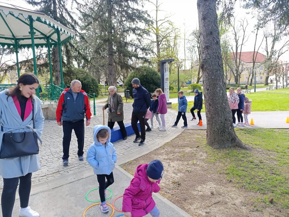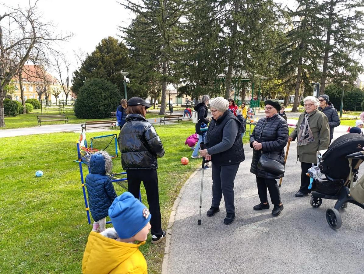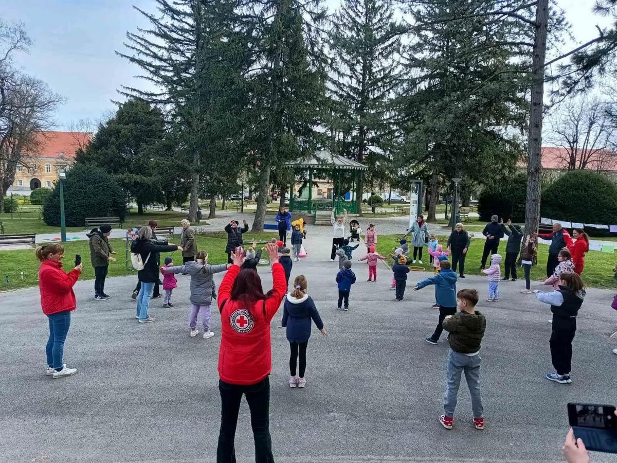 Ni relativno hladniji dan nije spriječio korisnike Doma za starije osobe Petrinja, da zajedno sa malim prijateljima Kornjačicama iz Dječjeg vrtića Petrinjčica, učenicima drugog razreda I. osnovne škole iz Petrinje, uz podršku djelatnice i ravnateljice Crvenog križa iz Petrinje, tjelovježbom u Gradskom parku obilježe ovaj dan. Svi su se sudionici na samom početku dobro zagrijali uz vježbe zagrijavanja koje je vodila trenerica Gordana, a potom su prema svojim mogućnostima prelazili pripremljeni poligon prepreka. Na taj je način ova višegeneracijska ekipa pridonijela svome zdravlju, ali i podsjetila prolaznike i širu javnost na važnost svakodnevnih tjelesnih aktivnosti.