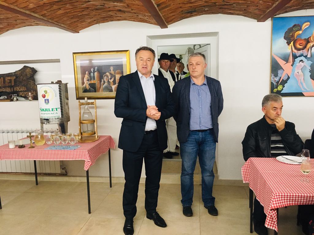 Župan Ivo Žinić je u petak, 9. studenoga 2018. godine, sa svojim zamjenikom Romanom Rosavcem u „Vinskom dvoru“ u Popovači nazočio tradicionalnom krštenju mošta u vino u organizaciji Udruge vinogradara i voćara „Škrlet“ Popovača.