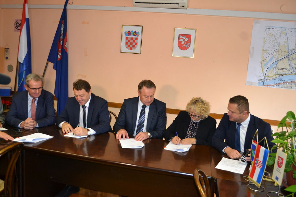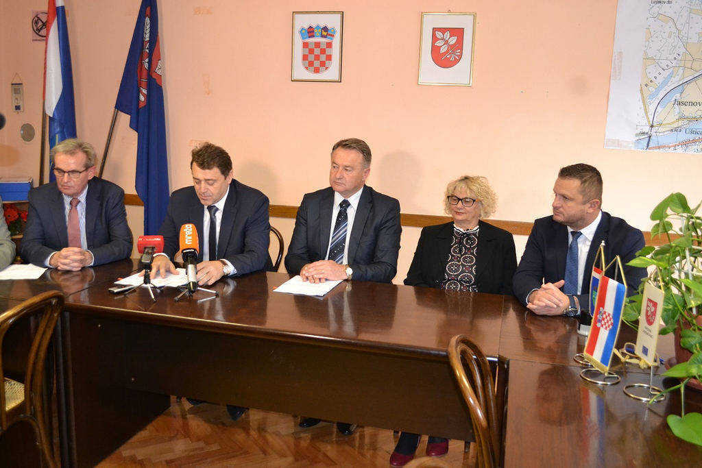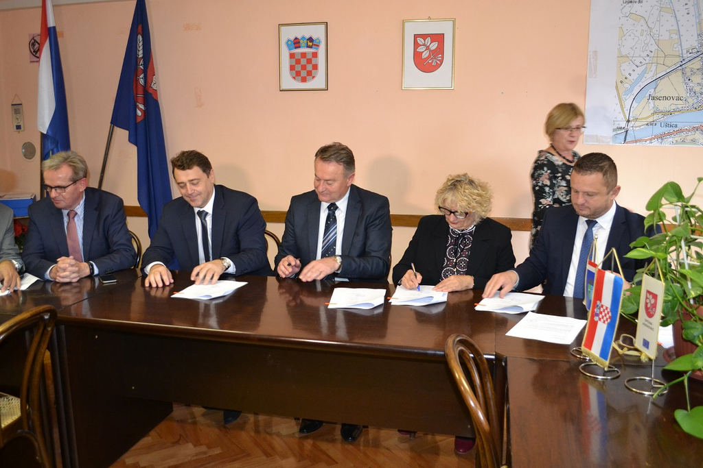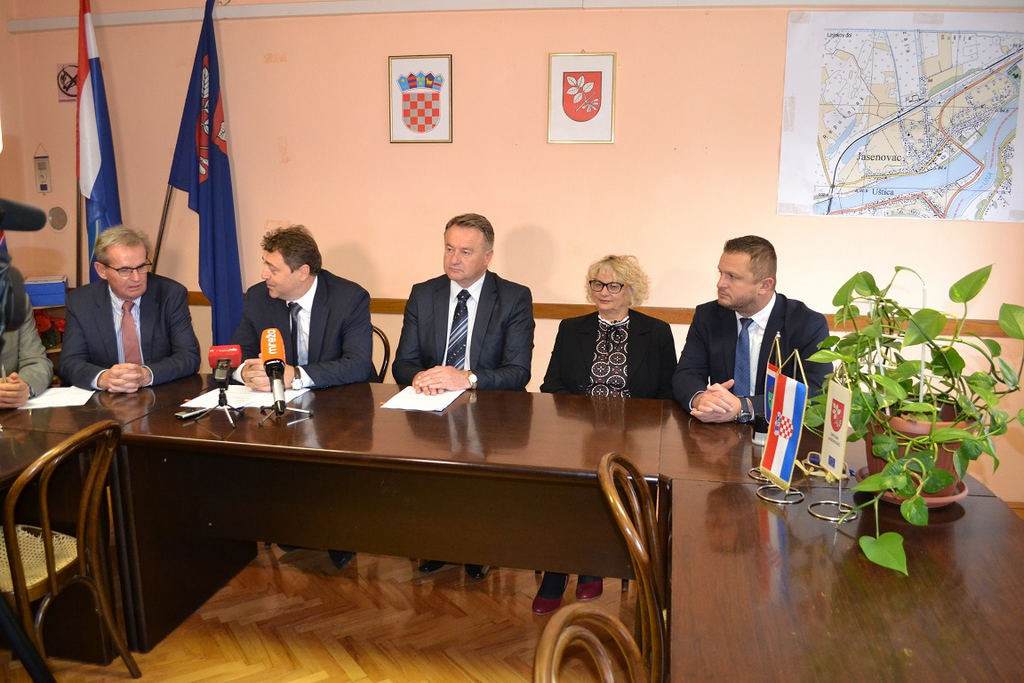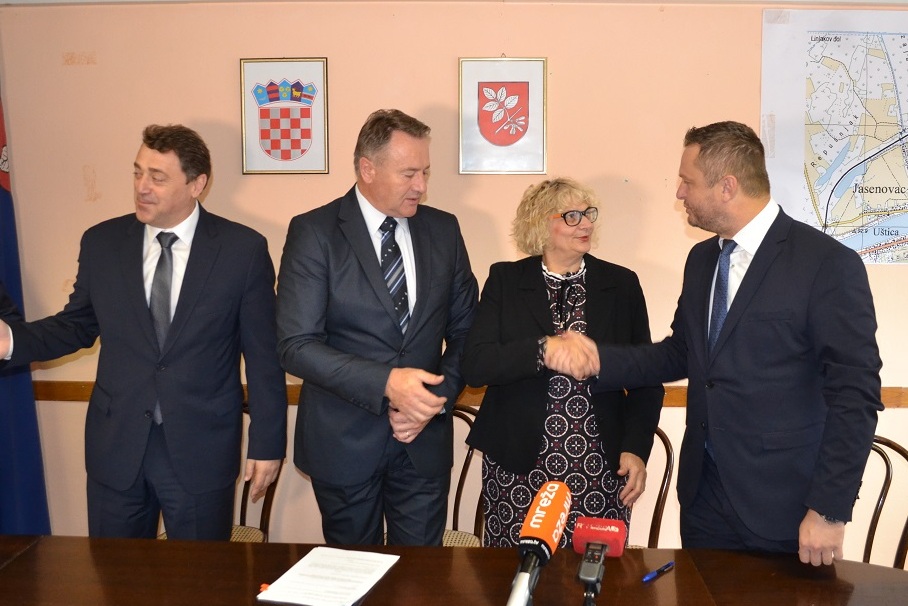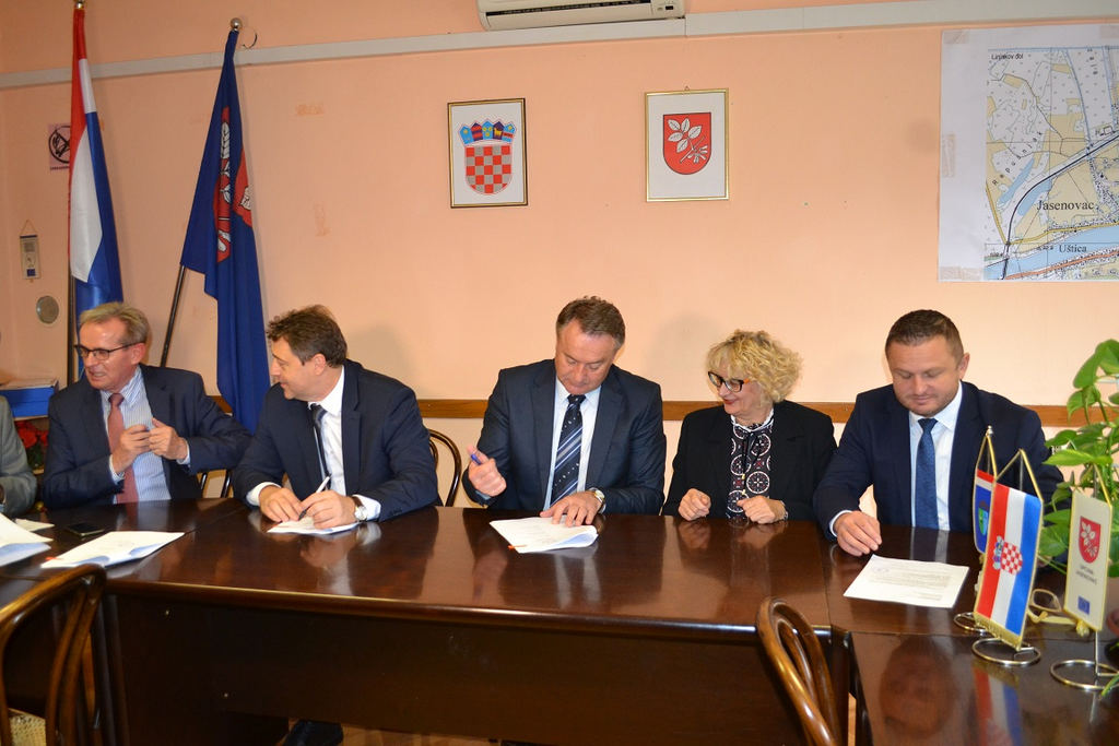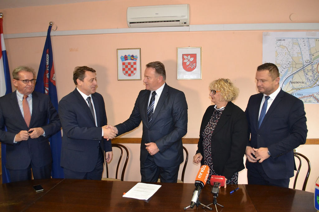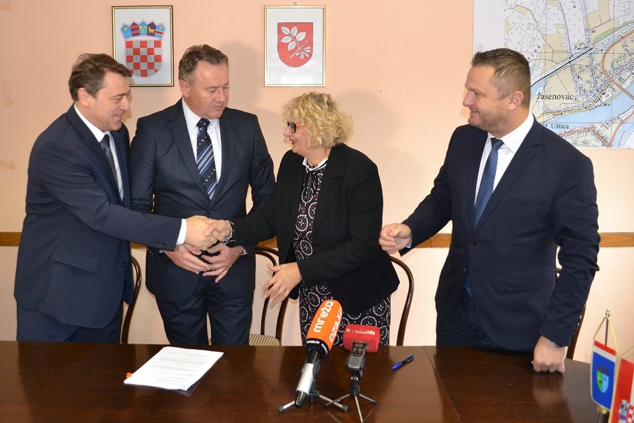 Župan Ivo Žinić (uz kojega je bio njegov zamjenik Roman Rosavec), ravnatelj Državne geodetske uprave Damir Šantek i načelnica Općine Jasenovac Marija Mačković potpisali su u petak, 9. studenoga 2018. godine, Sporazum o provođenju izmjere poljoprivrednog zemljišta u vlasništvu Republike Hrvatske na području općine Jasenovac.