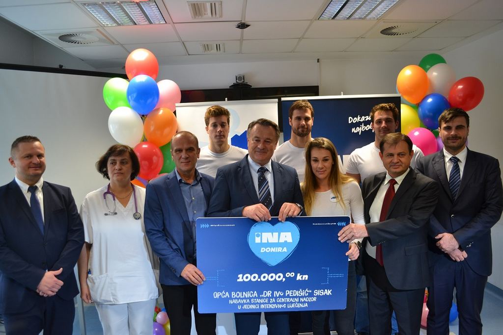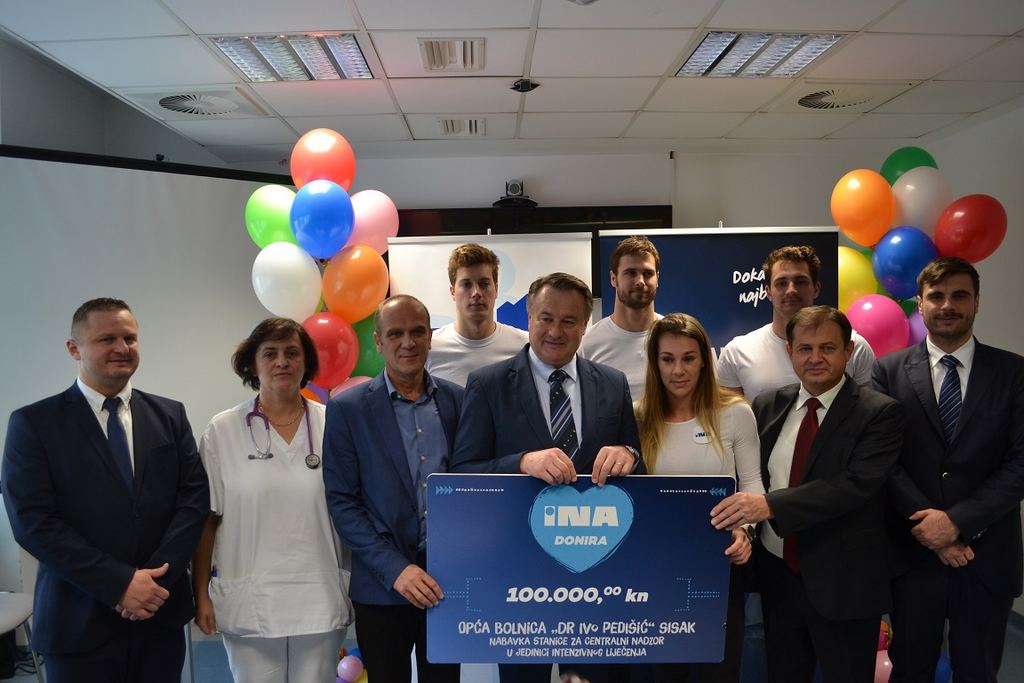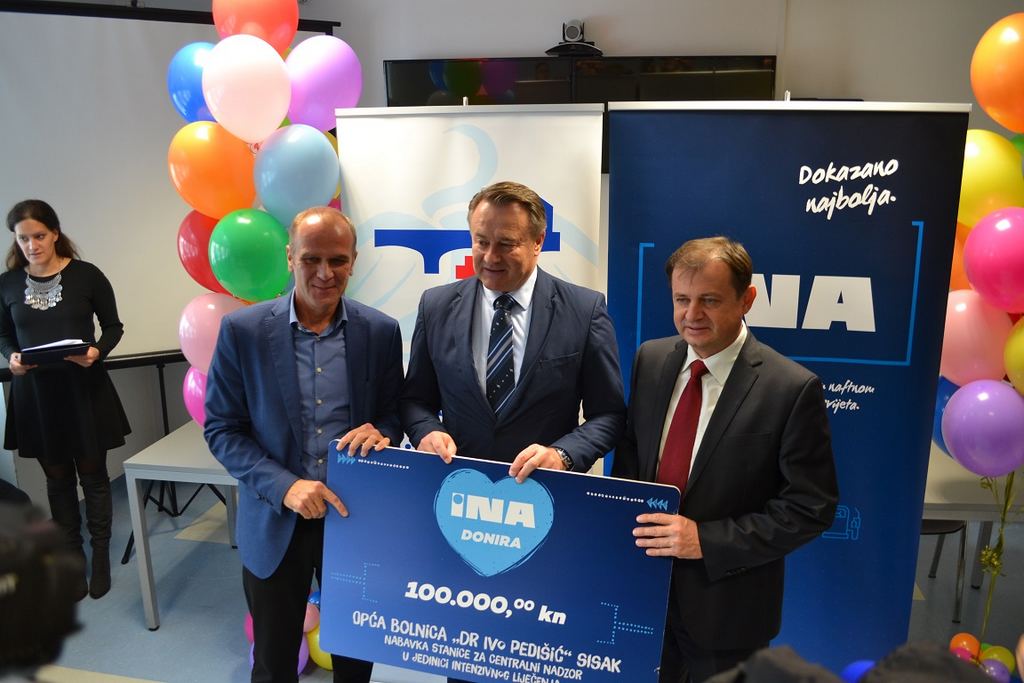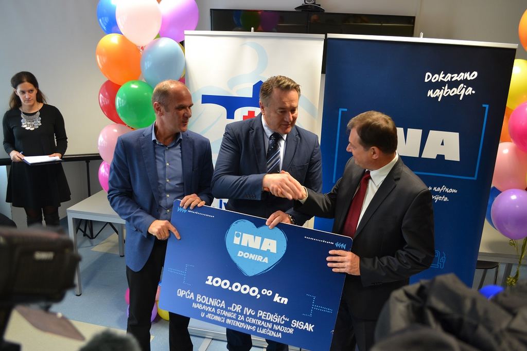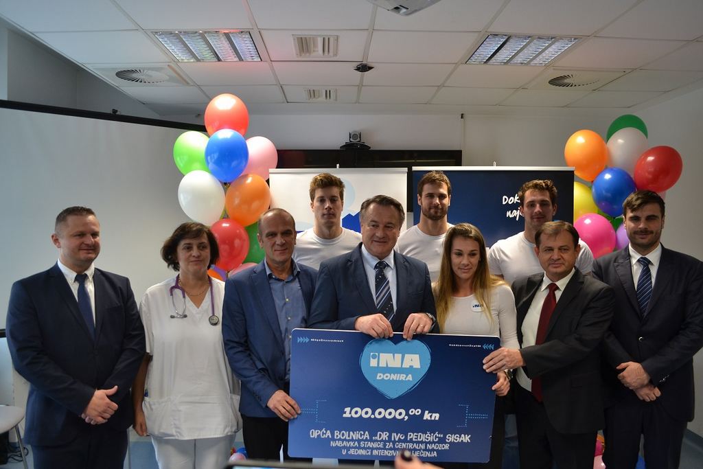 INA je u ovoj prigodi donirala sisačkoj bolnici uređaj za centralni nadzor, koji se nalazi u Jedinici intenzivnog liječenja. To je uređaj na kojem će biti podatci o svim vitalnim funkcijama svih bolesnika koji se nalaze u Jedinici intenzivnog liječenja. U slučaju da se desi bilo kakav incident uređaj alarmira medicinsko osoblje i na taj način se vrlo lako reagira, a isto se tako može kvalitetno pratiti djelovanje terapije.