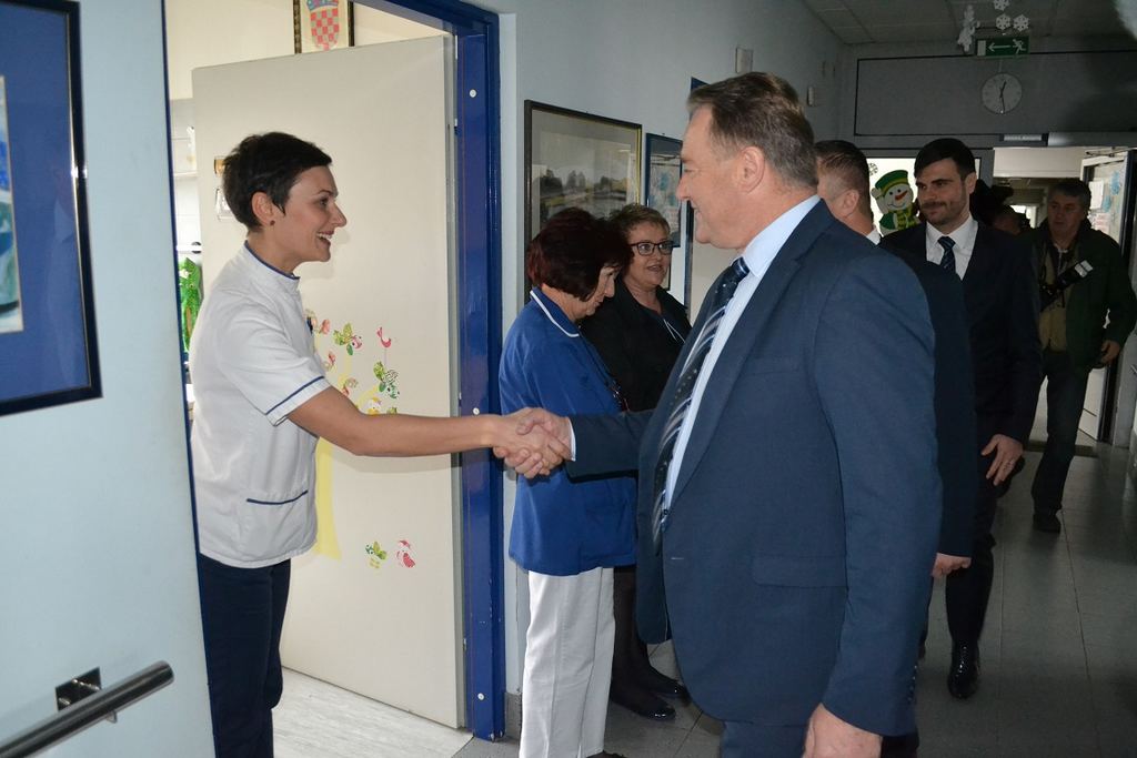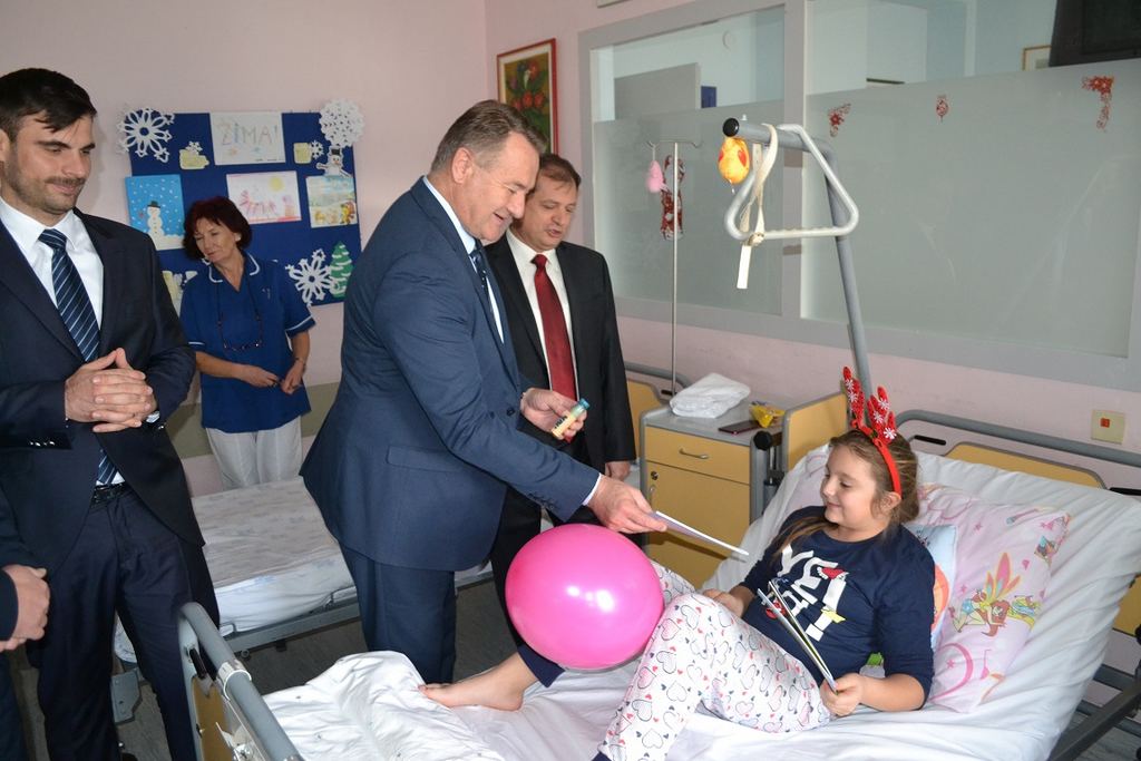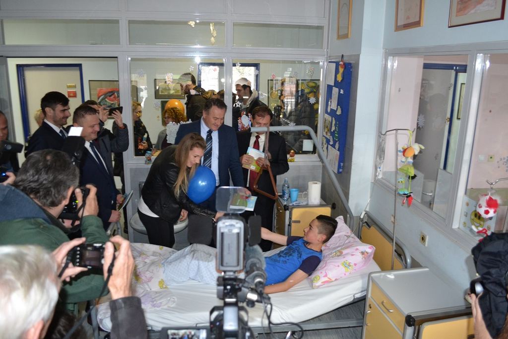 Nakon uručivanja donacije obišli su odjele Dječje kirurgije i Pedijatrije, s darovima za male pacijente.