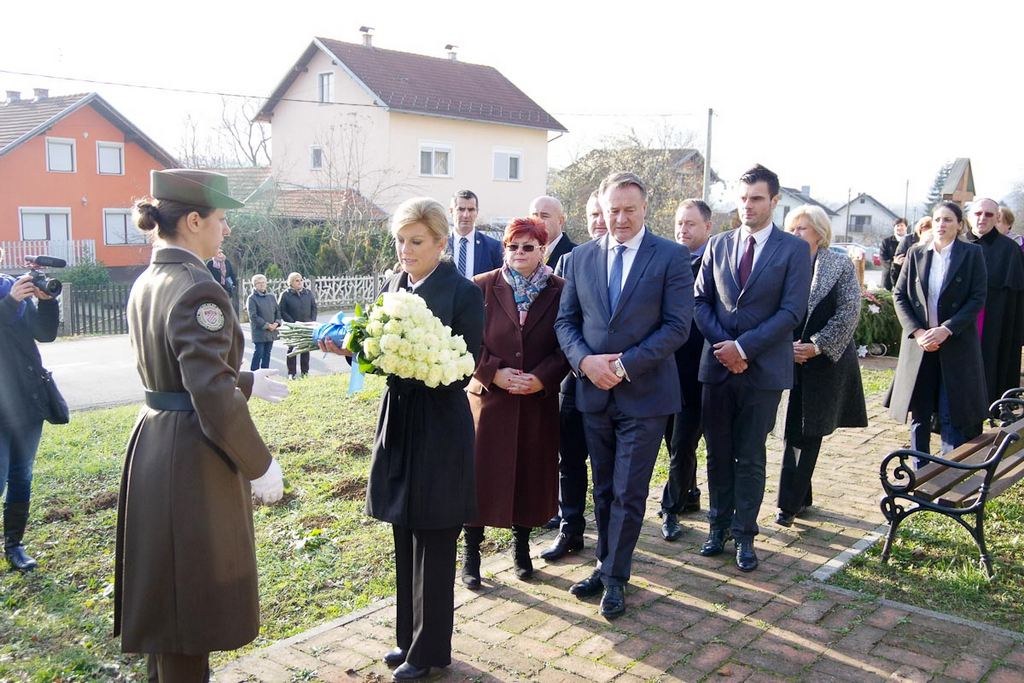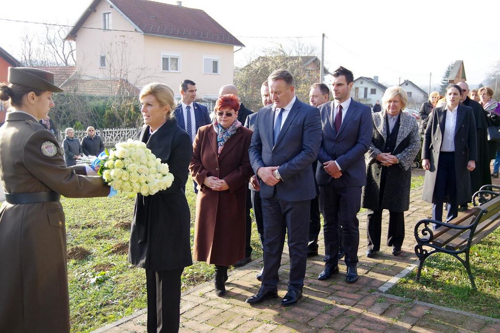 U Baćinu se Predsjednica susrela s članovima obitelji stradalih u Domovinskom ratu i odala počast žrtvama iz Domovinskog rata, na mjestu najveće masovne grobnice na području SMŽ, te kod mjesne kapelice. Predsjednica je, kao prva čelna osoba Republike Hrvatske, posjetila i Spomen sobu Domovinskog rata – Memorijalni prostor.