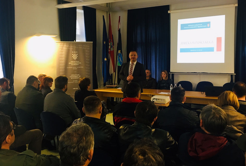 Sisačko-moslavačka županija u suradnji s HGK Županijskom komorom Sisak organizirala je ovu edukacijsku radionicu s ciljem upoznavanja lovoovlaštenika s Naredbom o mjerama za sprječavanje pojave i rano otkrivanje unosa virusa afričke svinjske kuge na području Republike Hrvatske. Zamjenik župana podsjetio je kako o važnosti lovstva na području Sisačko-moslavačke županije govori činjenica da je ustanovljeno 28 državnih i 38 zajedničkih lovišta na ukupno 245.044 ha te s obzirom na važnost lovstva u zaštiti i očuvanju biološke raznolikosti i ekološke ravnoteže prirodnih staništa divljači, Županija svake godine izdvaja značajna financijska sredstva za razvoj i unaprjeđenje lovstva na svom području.