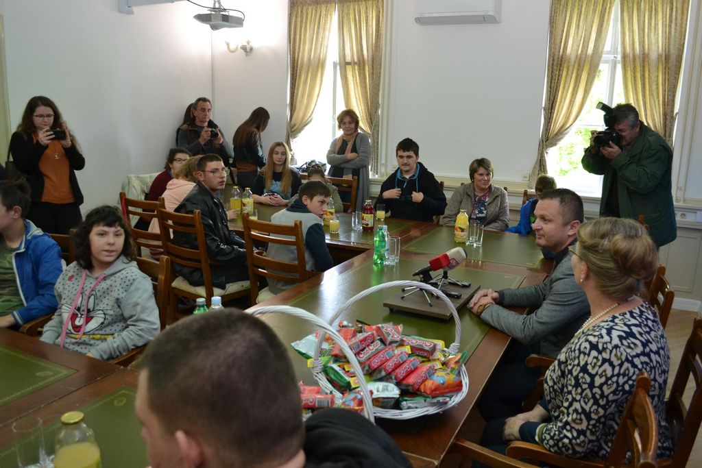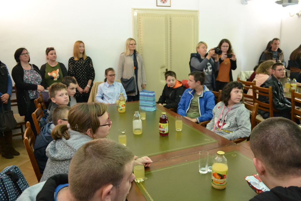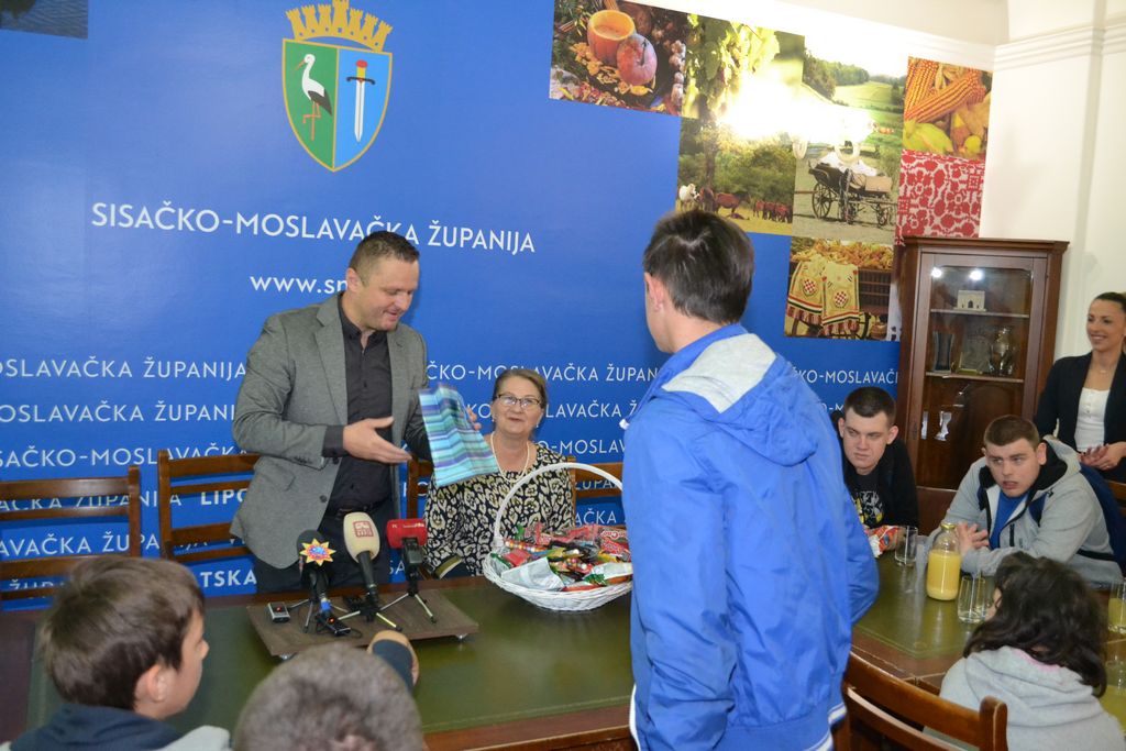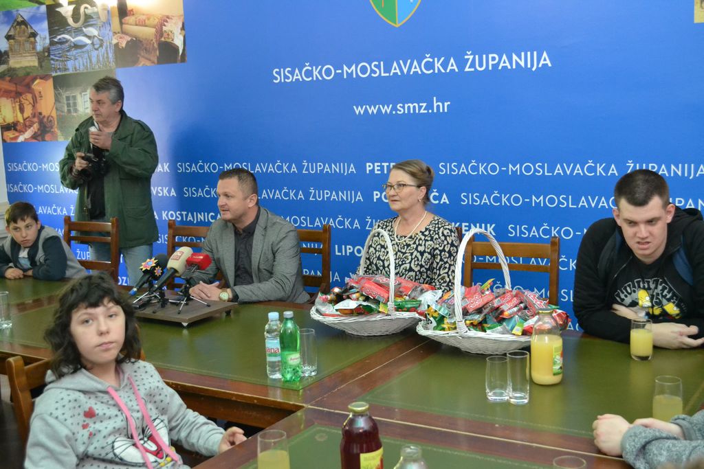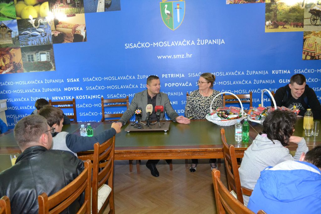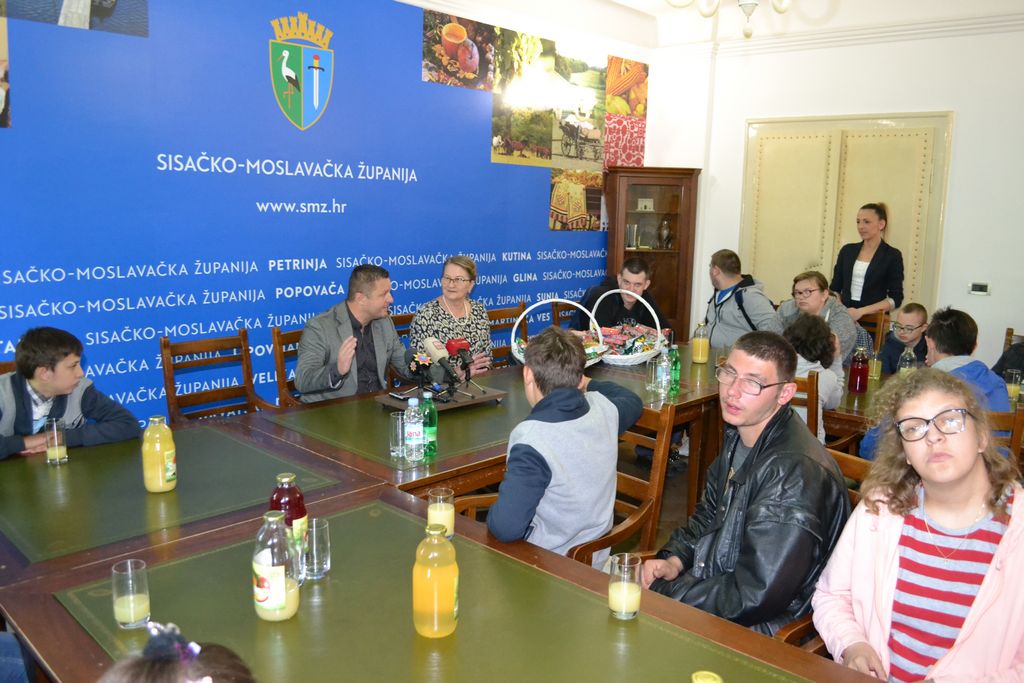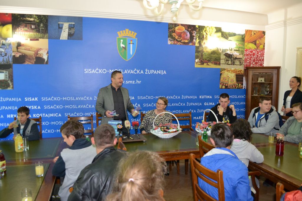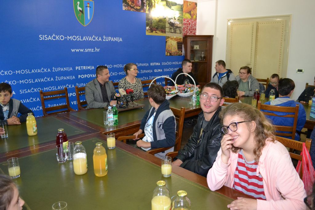 Zamjenik župana Roman Rosavec je u petak, 10. svibnja 2019. godine, u Velikom kabinetu sjedišta Sisačko-moslavačke županije u Sisku ugostio učenice i učenike Odjela za učenike s teškoćama u razvoju petrinjske Osnovne škole Dragutina Tadijanovića. U slobodnom, nevezanom razgovoru, zamjenik župana i učenici, koji su u posjet Županiji došli sa svojim učiteljicama i ravnateljicom škole, razmijenili su informacije. Razgovaralo se o funkcioniranju Županije, projektima i programima županijske vlasti, ali i o svakodnevnom životu i obvezama učenika i njihovim planovima i nadanjima.