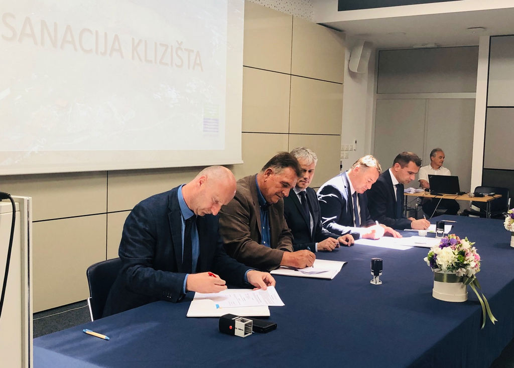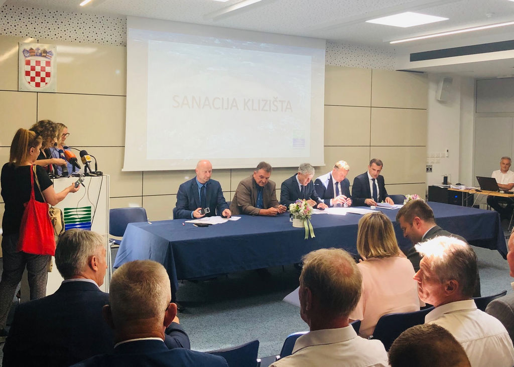 Župan Ivo Žinić, uz kojeg je bio njegov zamjenik Roman Rosavec, je u utorak, 2. srpnja 2019. godine, u poslovnoj zgradi Hrvatskih voda, potpisao ugovor o sufinanciranju projektne dokumentacije i radova sanacije klizišta.