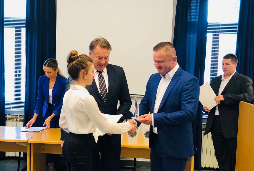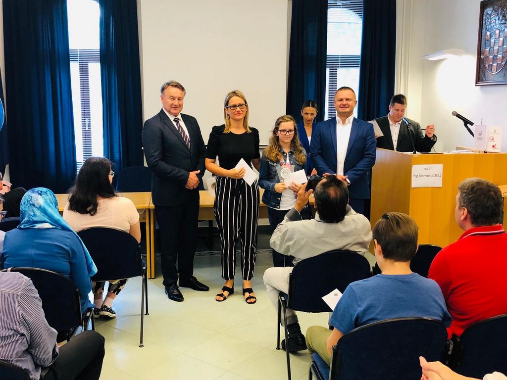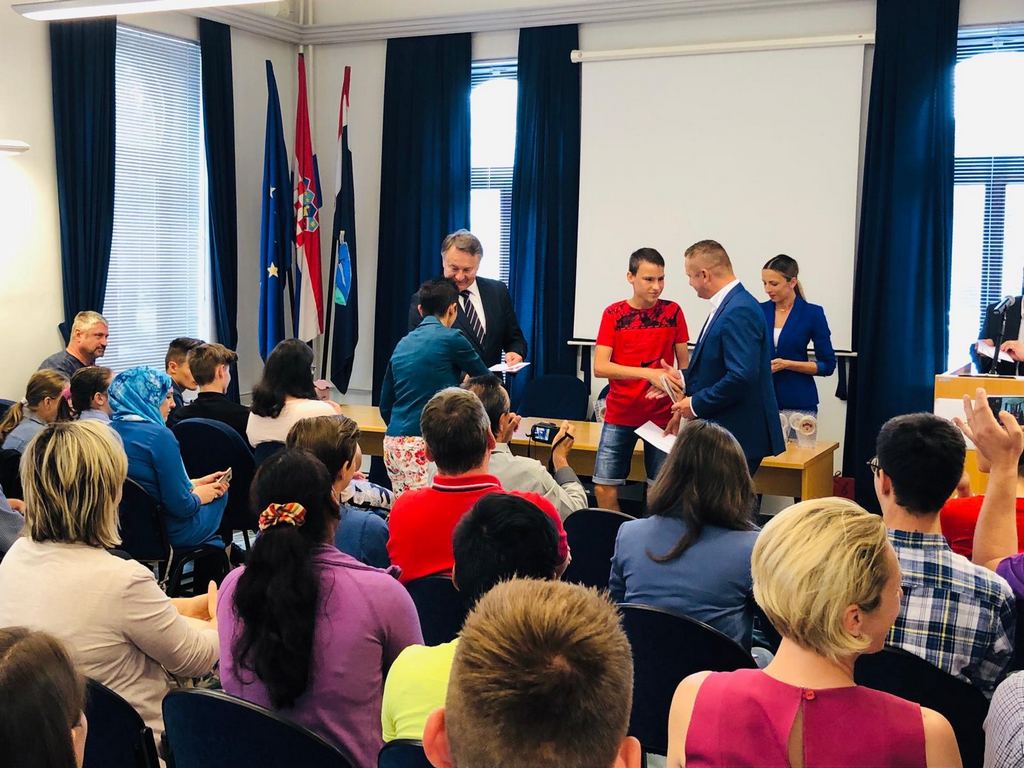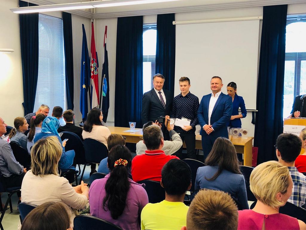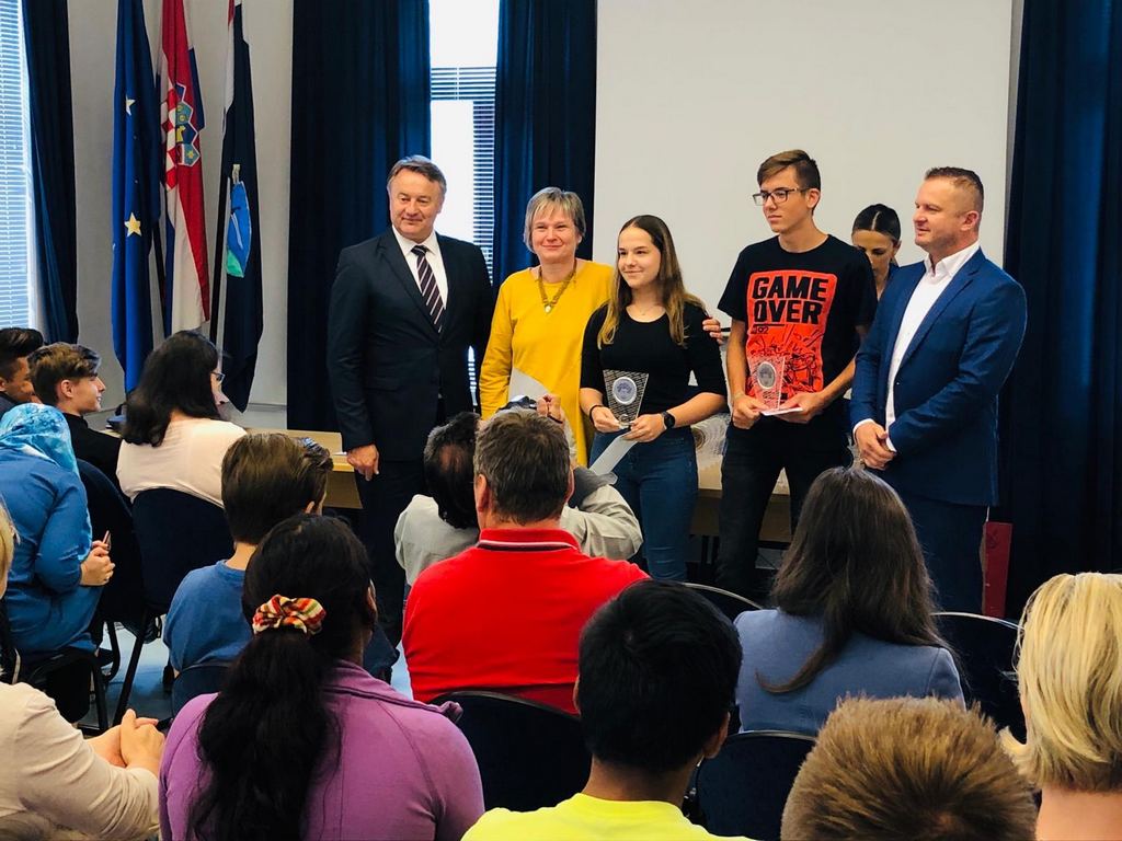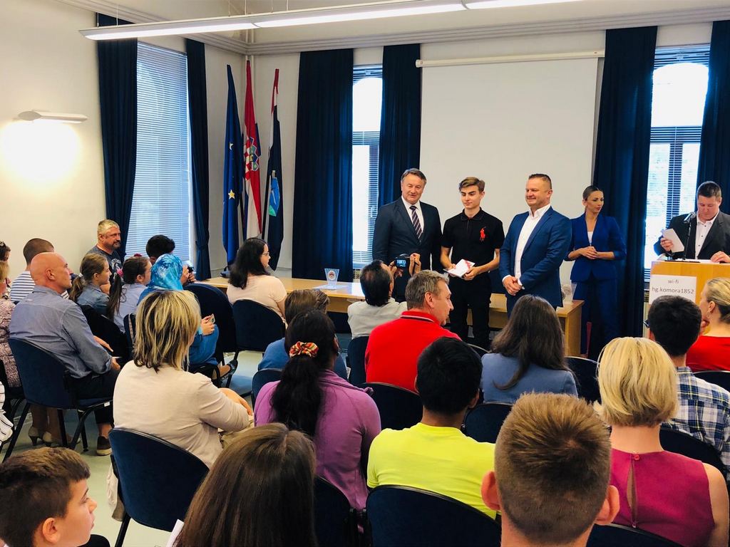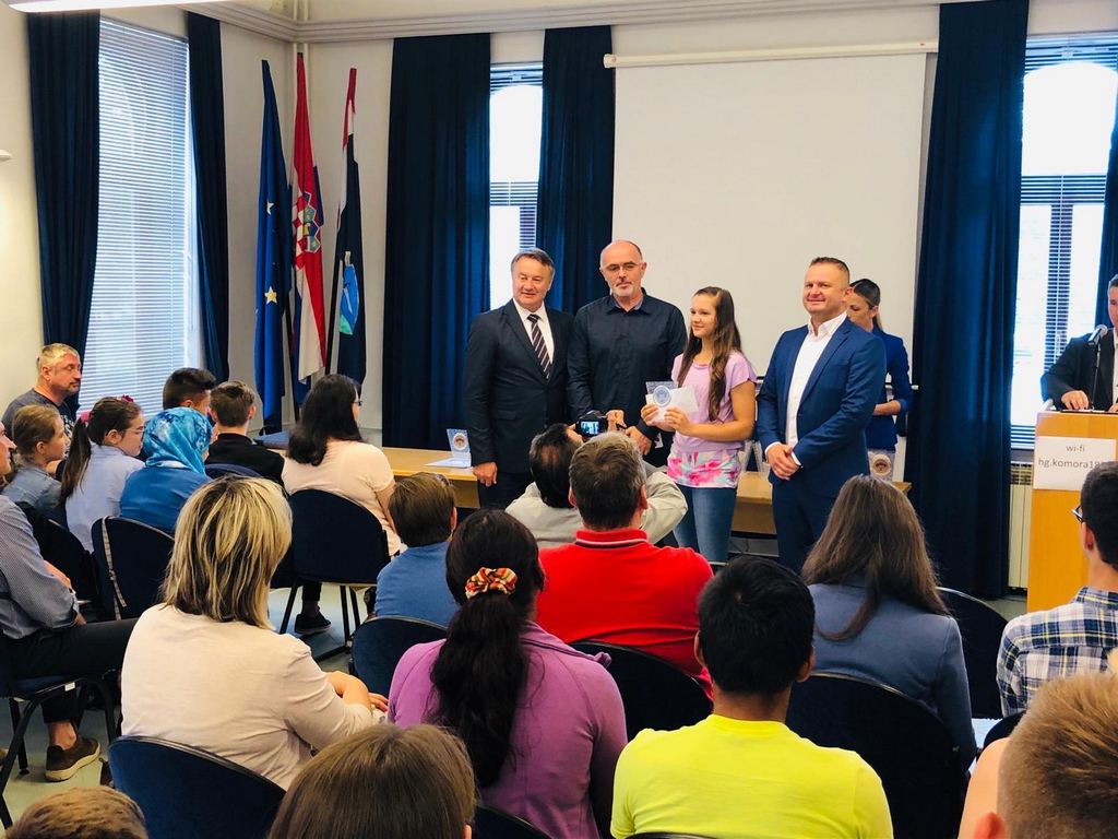 Župan Ivo Žinić i njegov zamjenik Roman Rosavec su u srijedu, 10. srpnja 2019. godine, u prostoru Hrvatske gospodarske komore u Sisku dodijelili nagrade učenicima koji su ostvarili iznimne rezultate na natjecanjima.