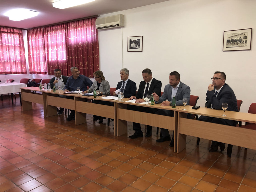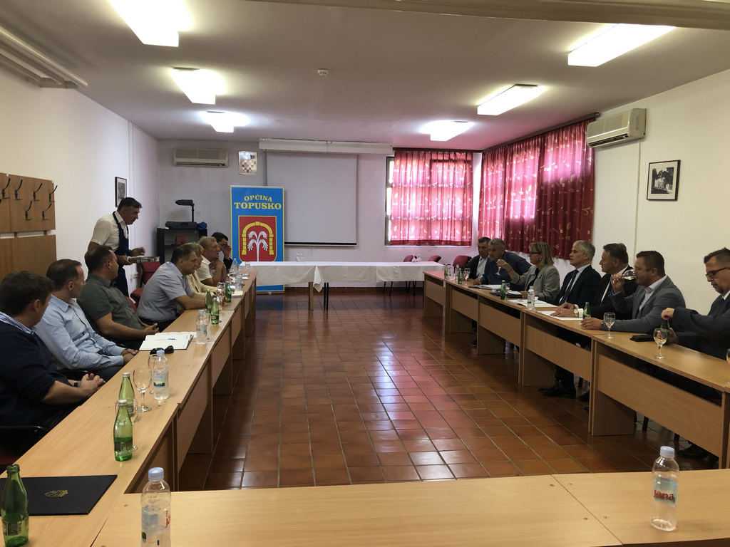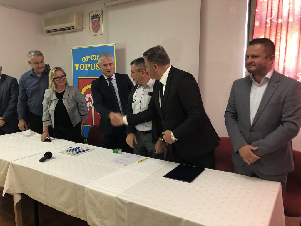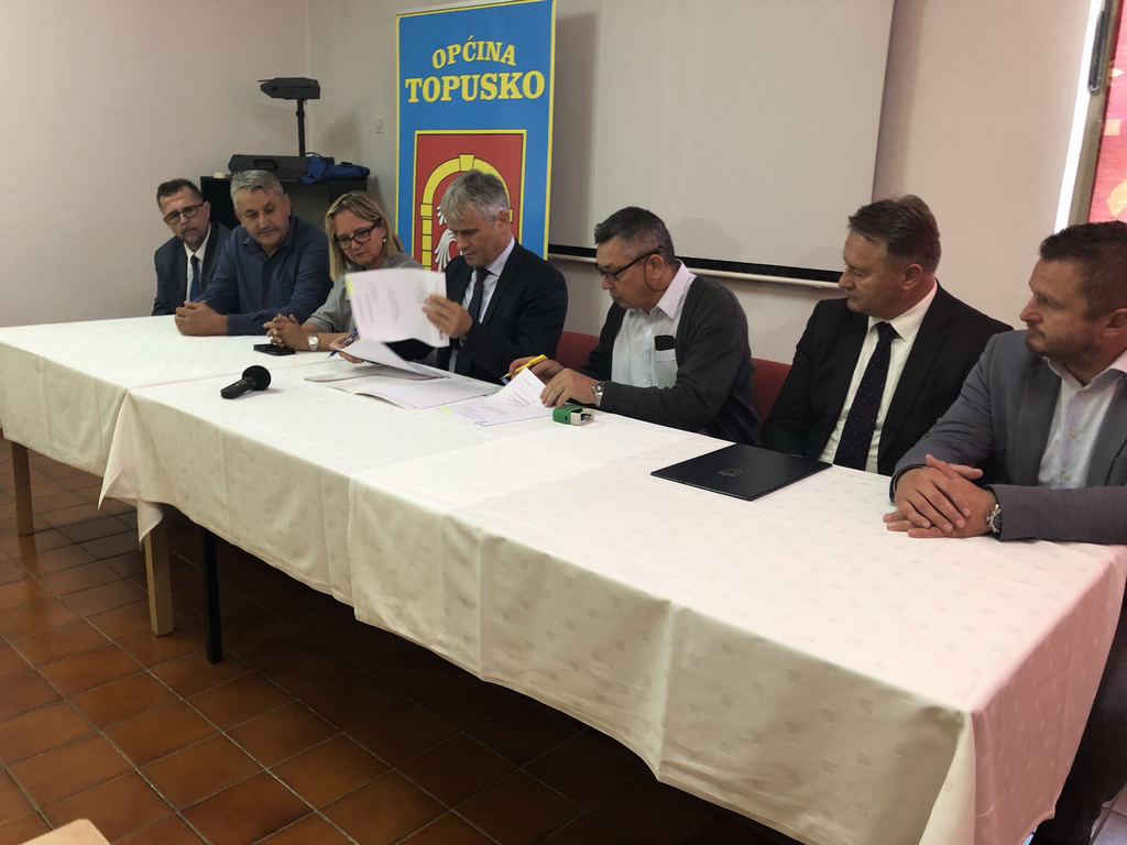 Nakon obilaska radova, u prostoru Lječilišta Topusko nazočili su potpisivanju Ugovora o izgradnji vodovoda „Gređani“, kojeg su potpisali Općina Topusko i Hrvatske vode. Nakon potpisivanja Ugovora uslijedio je radni sastanak.