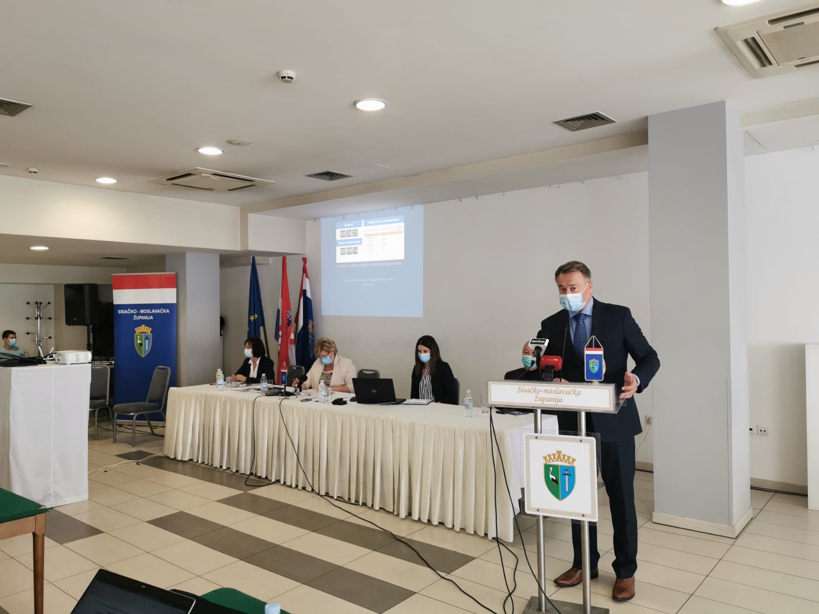 Vijećnik HDZ-a Stjepan Markanović postavio je pitanja vezana za stanje sa zaraznom bolesti COVID-19 na području županije i ima li dovoljno zaštitne opreme. Župan je istaknuo zadovoljstvo radom svih službi Stožera, podsjetio kako u Županiji nitko nije bio oboljelih na respiratoru, nije bilo oboljelih u Domovima za starije i nemoćne te zapravo na teritorijalnu rasprostranjenost Sisačko-moslavačka županija ima mali broj oboljelih. Od 17. lipnja 2020. godine do danas četrdeset i tri pacijenta su oboljela od kojih šest pacijenata nisu stanovnici županije. Od četrdeset i tri navedena dijagnosticirana pacijenta ostalo je još trideset aktivnih pacijenata koji se nalaze na županijskom prostoru. Od tih trideset pacijenata, tri su pacijenta s područja grada Petrinje, šest s područja grada Sisku, šesnaest s područja grada Kutine, dva s područja grada Novske, jedan s područja općine Martinska Ves, jedan s područja grada Popovače i jedan s područja općine Sunja. Jedna pacijentica s područja grada Kutine koja je bila na kućnom liječenju, zbog pogoršanja zdravstvenog stanja prebačena je u izolacijsku jedinicu Opće bolnice „Dr. Ivo Pedišić“ u Sisku na daljnje liječenje te oko 300 ljudi je u samoizolaciji. Zaštitne opreme ima dovoljno.