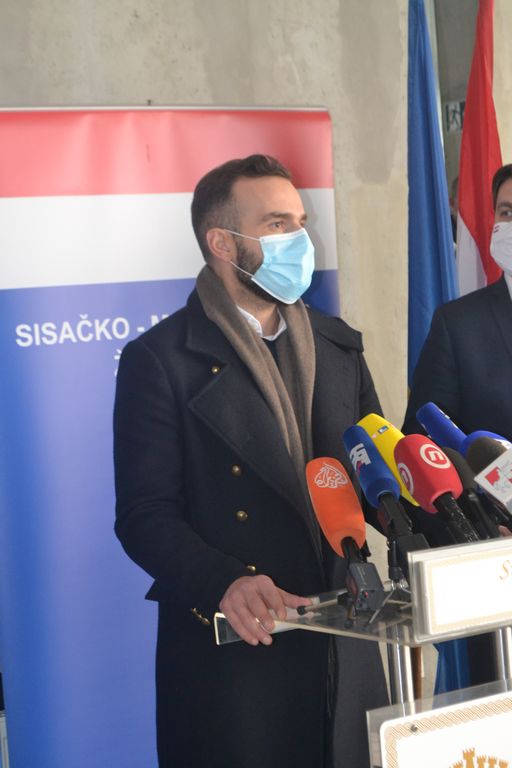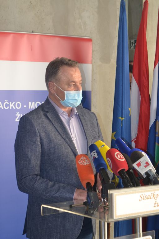 Župan Žinić je zahvalio ministrima Ćoriću i Aladroviću na angažmanu u sanaciji posljedica potresa u SMŽ. Župan, koji je na ovaj sastanak stigao sa sastanka Stožera Civilne zaštite u Petrinji, izvijestio je novinare kako su se na popisu općina i gradova koji su pretrpjeli štete našli novi, općine Jasenovac, Martinska Ves i Hrvatska Dubica. Osim šteta na obiteljskim objektima, na području zahvaćenom potresom velike su štete na gospodarskim objektima. Više od 750 obrta pretrpjelo je veće ili manje štete, kao i više od 850 trgovačkih društava i poduzeća. Župan je rekao kako vjeruje da „nećemo ići samo u obnovu ovih objekata“, nego cijelu situaciju vidi „kao veliku priliku za razvoj ovog kraja“.