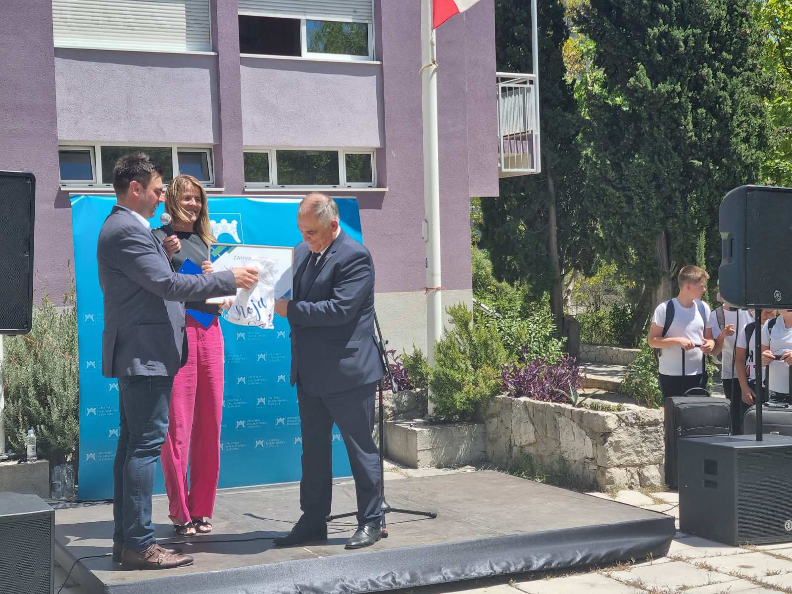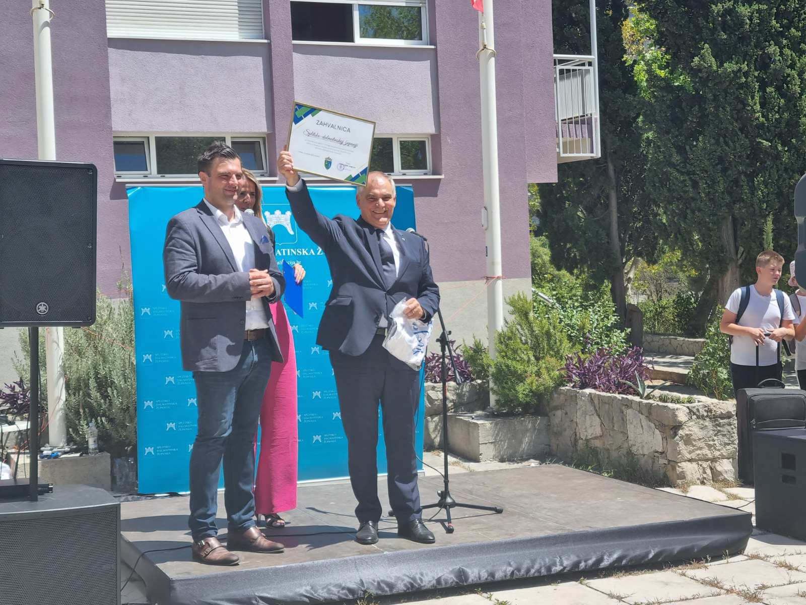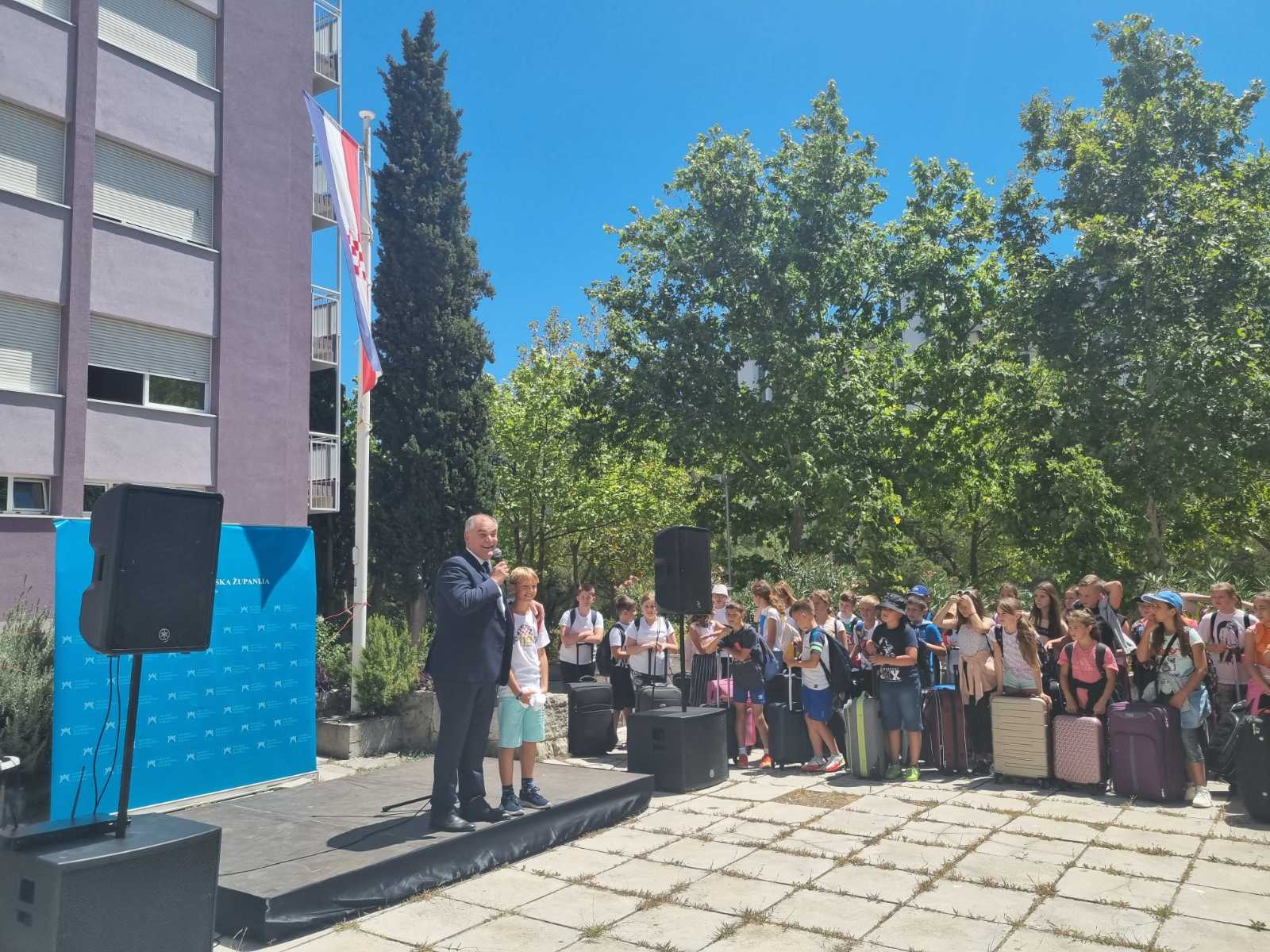 Učenike i njihove pratitelje u Splitu je dočekao sisačko-moslavački župan Ivan Celjak koji im je uručio prigodni poklon kako bi s ponosom na županiju i svoj kraj, nosili ove uspomene u srcu. U ovoj prigodi uručio je Splitsko-dalmatinskoj županiji, županu Blaženku Bobanu, zahvalnicu za svesrdnu suradnju i omogućavanje besplatnog ljetovanja djeci s područja cijele Sisačko-moslavačke županije: „Jako sam sretan, prvenstveno što su djeca s područja SMŽ stigla sretno ovdje u Split, a djeca su uzbuđena od ranog jutra. Kažu nam da su pojeli sve sendviče i sve lizalice, da su igrali sve igre, da su jedva čekali da stignu u Split. Osim uživanja u prekrasnom Splitu, u vremenu, u moru, djeci je također omogućen bogat sadržaj što se tiče zabavnog programa, sportskog programa, kulturnog programa… Djeca će vidjeti Poljud, Dioklecijanovu palaču, ići će na Marjan. Isto tako će ići u Sinj, kupat će se i na bazenima i djeca su zaista sretna, roditelji su sretni, a moram priznati da smo i mi uzbuđeni, pogotovo kad ovako vidite četiristotinjak djece, kad vidite tu iskrenu dječju radost, dječju sreću, ne možete ostati ravnodušni.