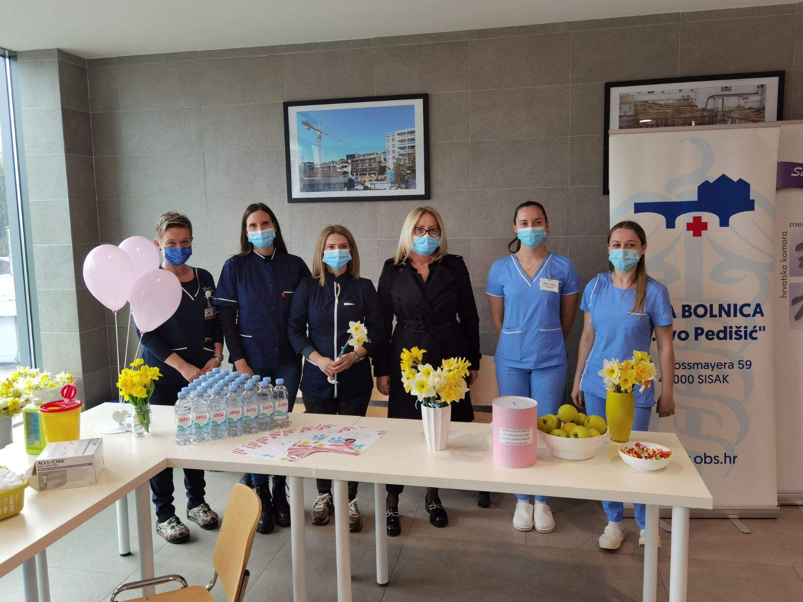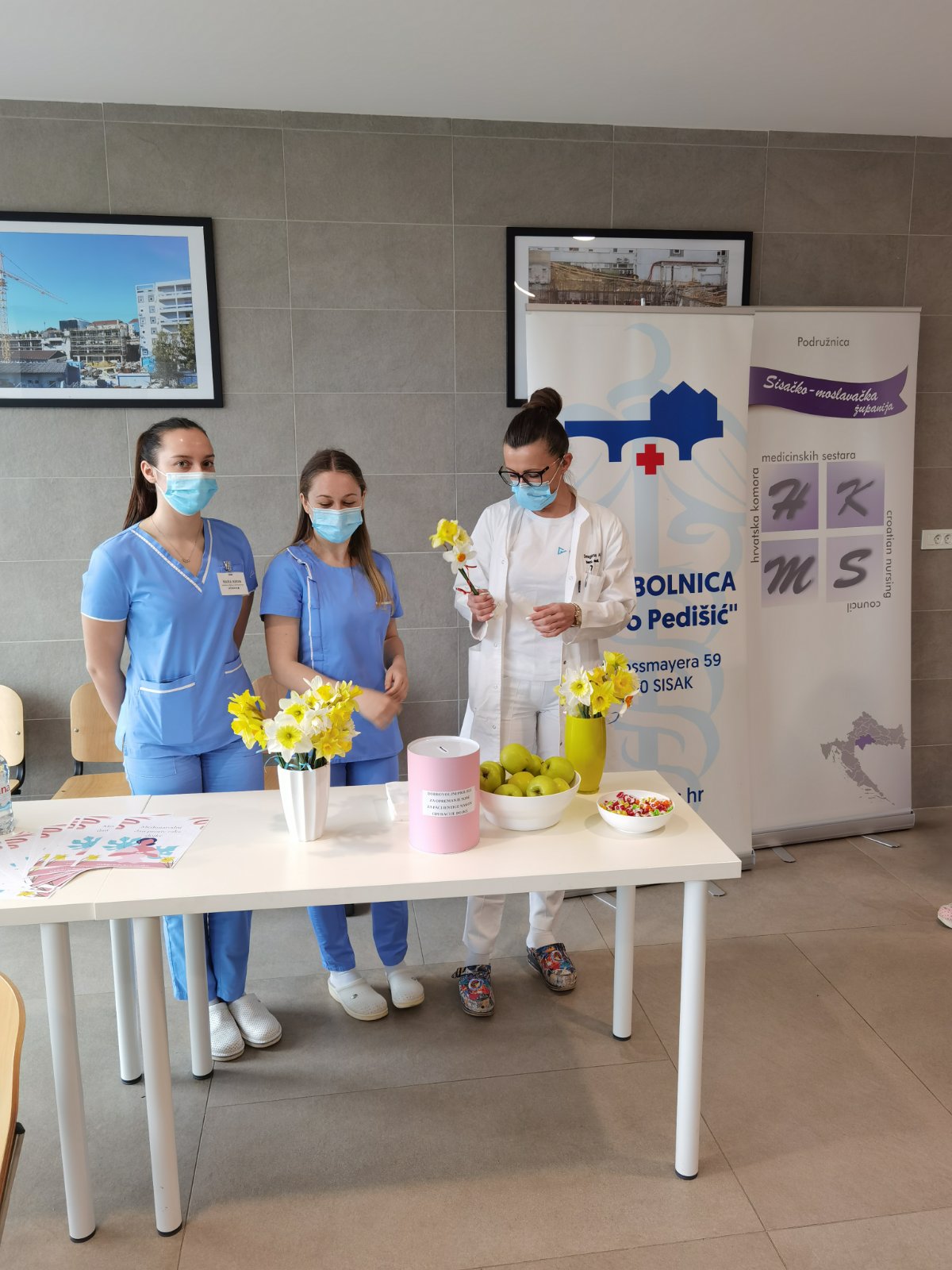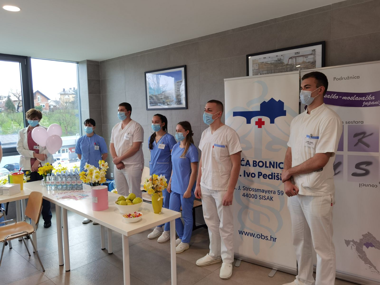Uz mnogobrojne zdravstvene djelatnike sisačke bolnice, podršku akciji dali su i učenici 4. razreda srednje škole Viktorovac iz Siska. Mladi medicinari su svim zainteresiranim posjetiteljima provjerili krvni tlak, šećer i težinu.
