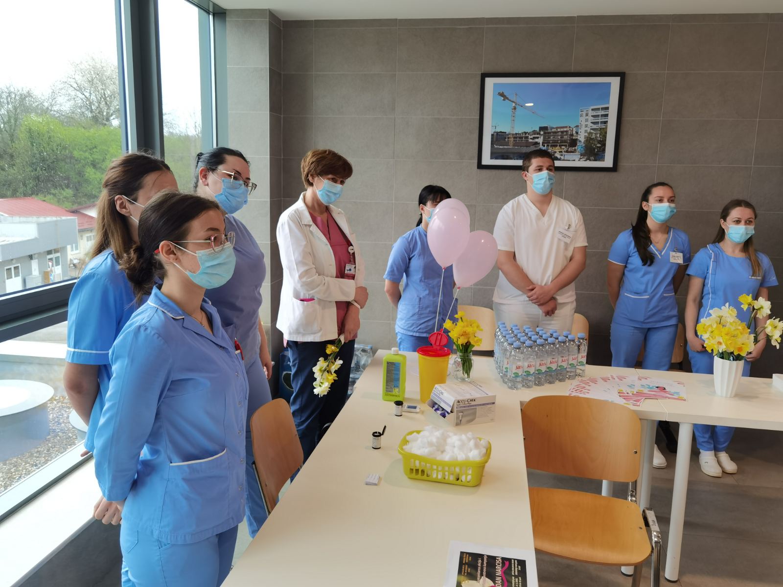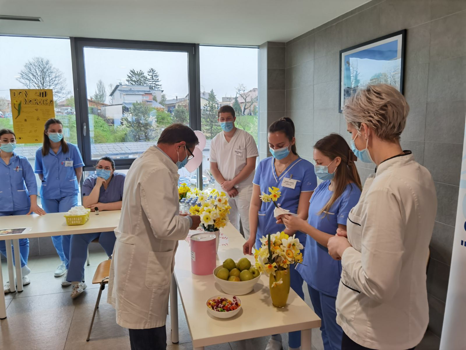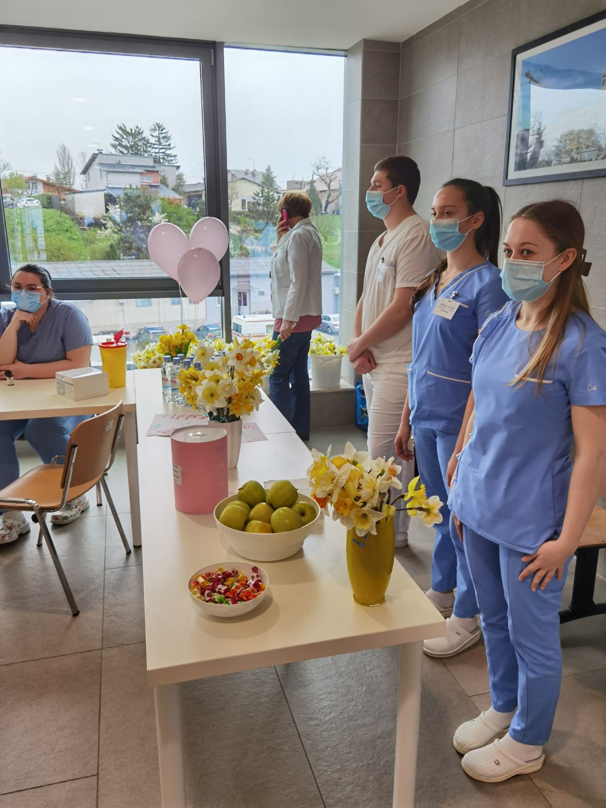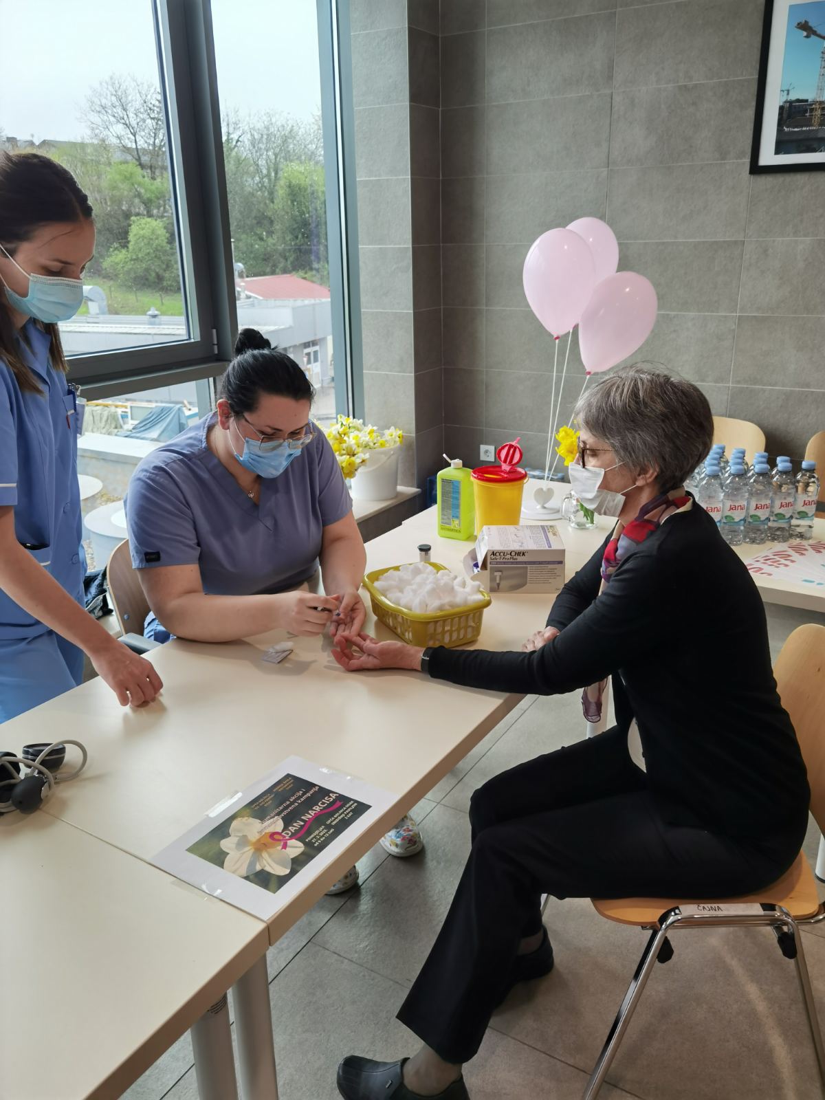 Uz mnogobrojne zdravstvene djelatnike sisačke bolnice, podršku akciji dali su i učenici 4. razreda srednje škole Viktorovac iz Siska. Mladi medicinari su svim zainteresiranim posjetiteljima provjerili krvni tlak, šećer i težinu.