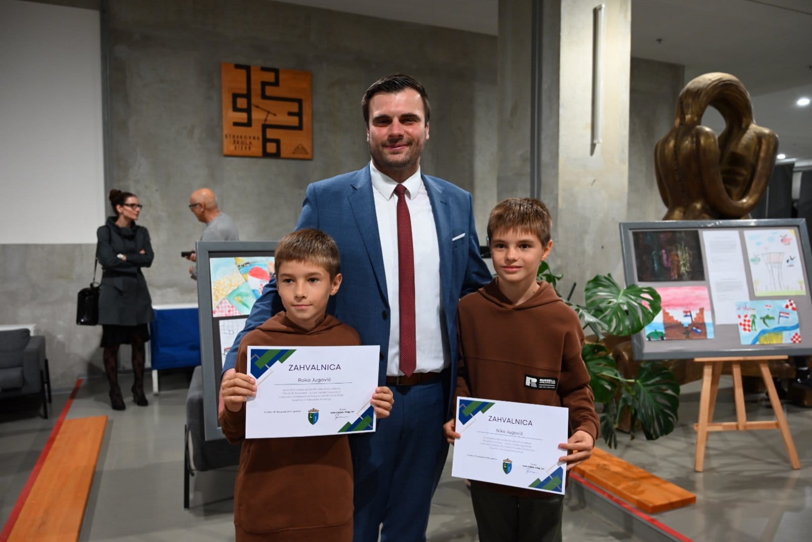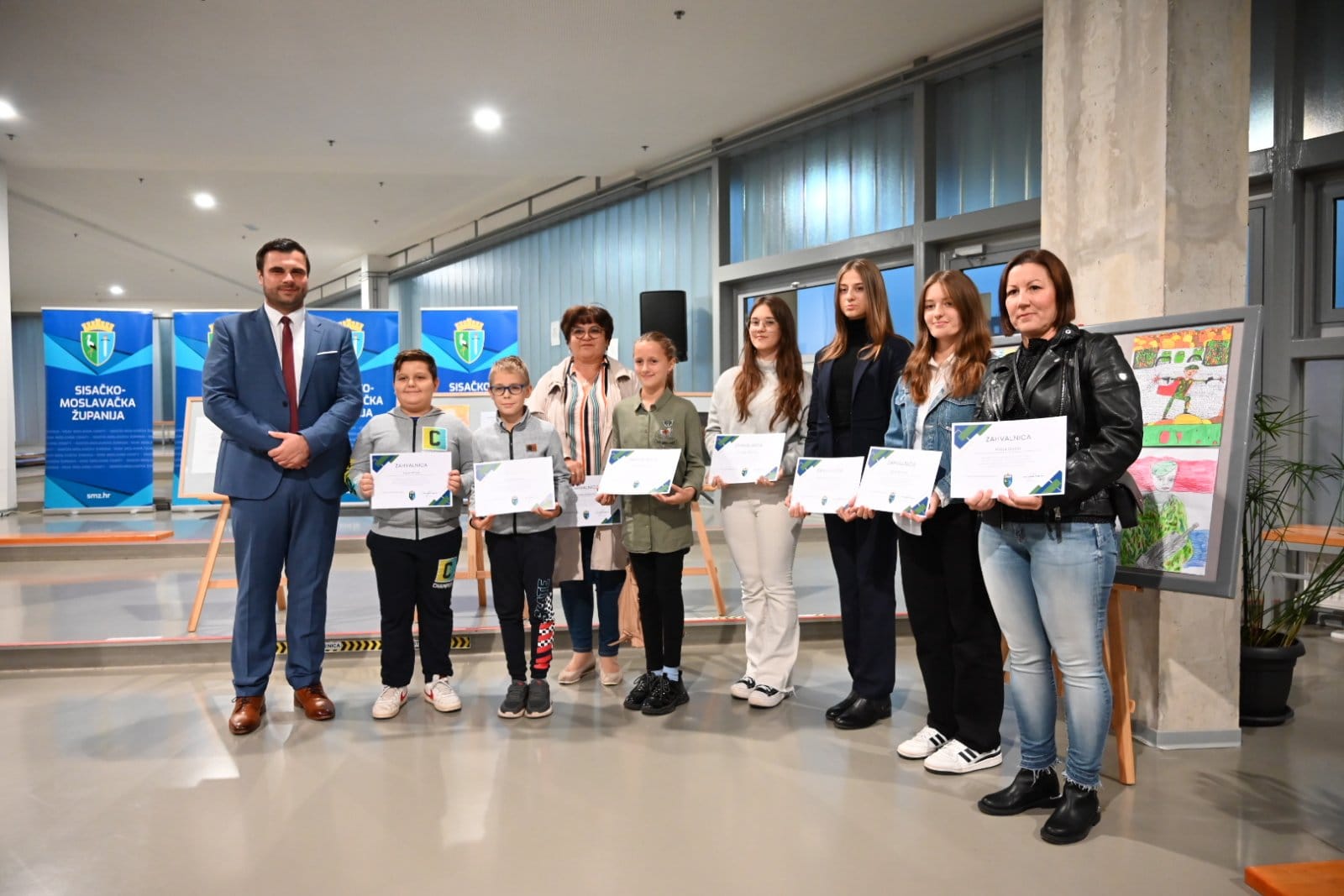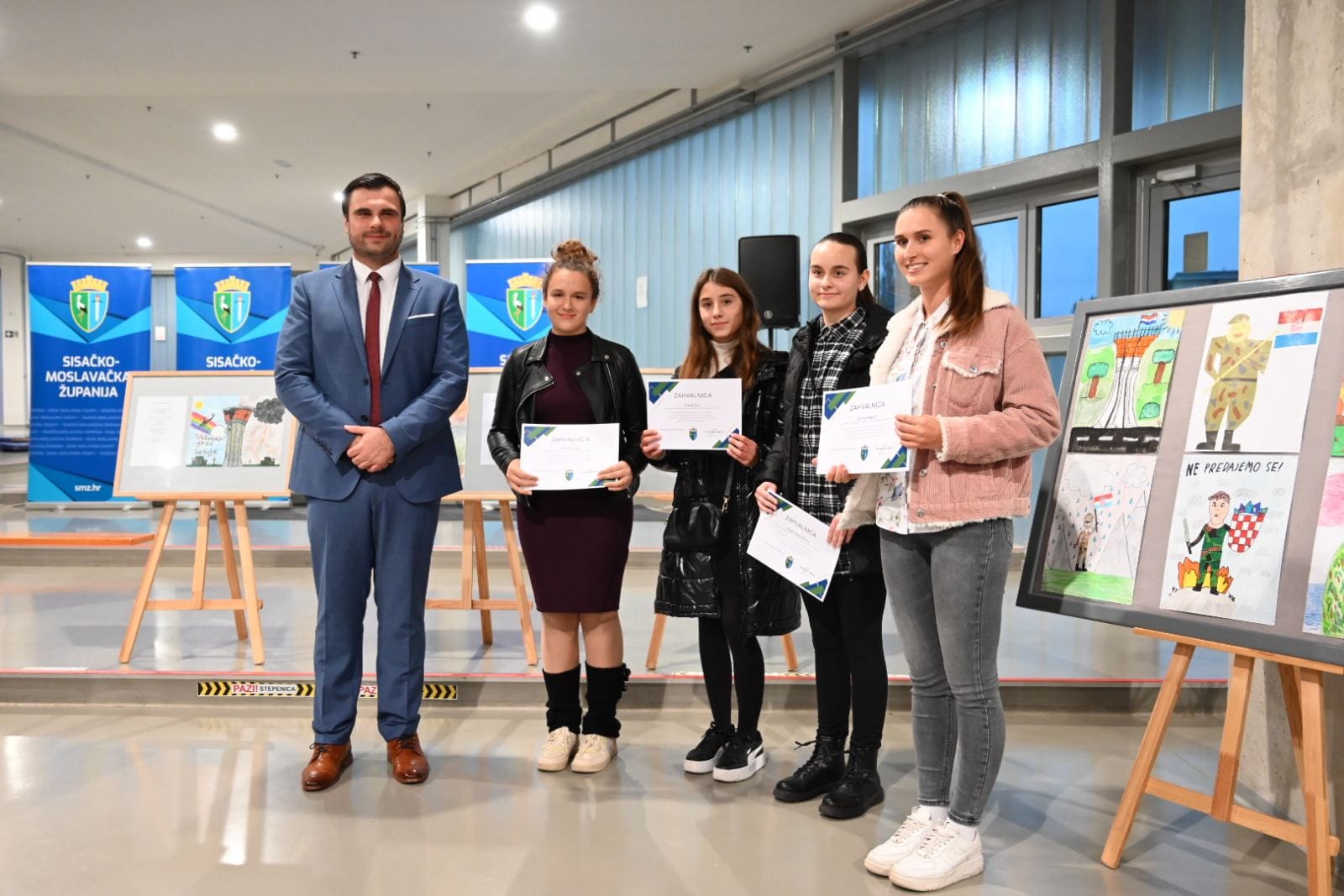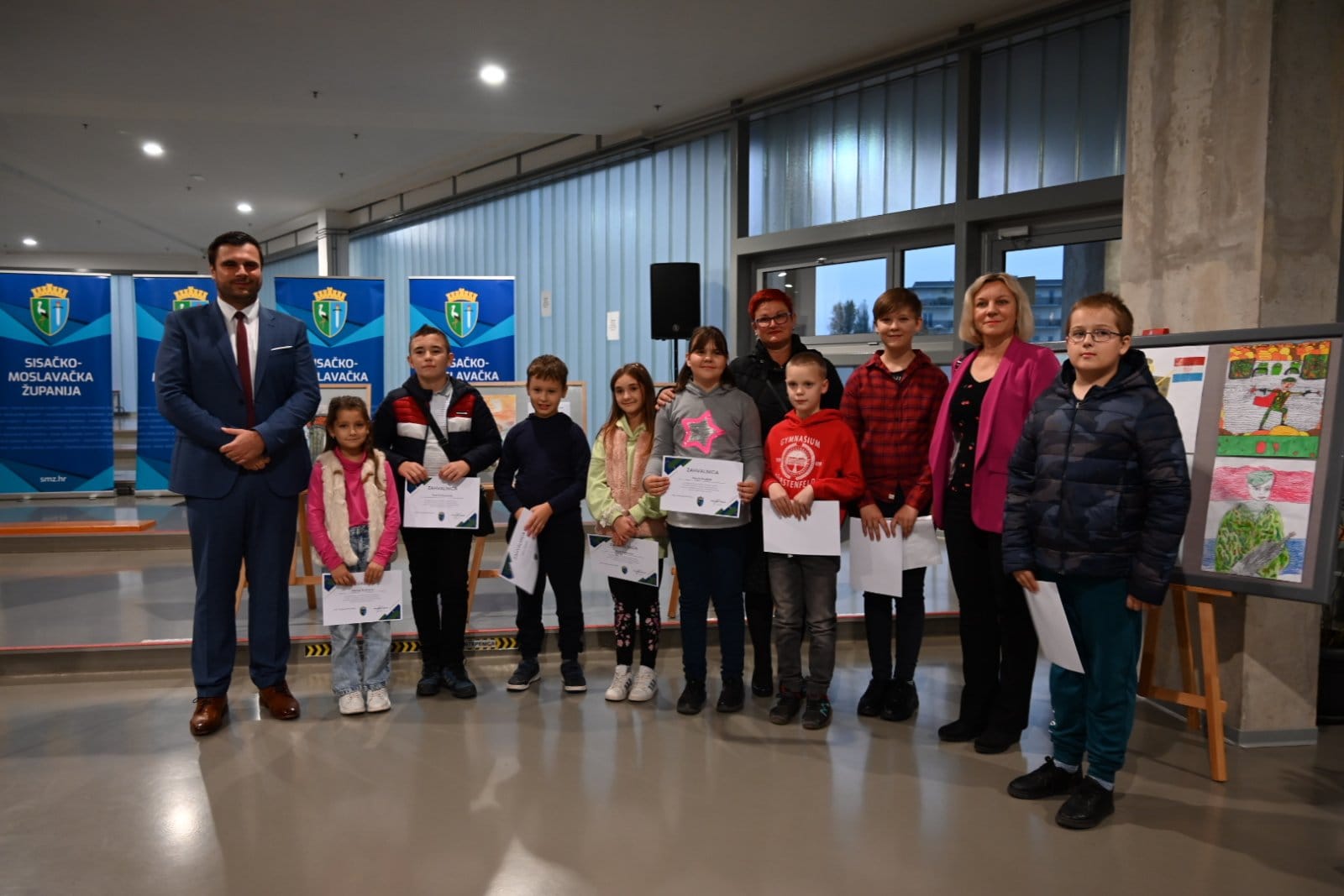 U Strukovnoj školi Sisak večeras je otvorena izložba likovnih i literarnih radova na temu „Hrvatski branitelji- junaci modernog doba“ učenika osnovnih škola koji su se prijavili na Javni poziv koji je raspisao Upravni odjel za poslove župana Sisačko-moslavačke županije u povodu obilježavanja Dana hrvatskih branitelja Sisačko-moslavačke županije. Sudjelovalo je 120 učenica i učenika iz 16 škola s područja cijele županije kojima je župan Ivan Celjak uručio zahvalnice za sudjelovanje, a najbolji radovi nagrađeni su prigodnim poklonom. U kategoriji likovnih radova učenika 4. razreda nagrade su primili Tara Šantek iz Osnovne škole Glina, Tena Dobrenić iz Osnovne škole Ivana Kukuljevića Sisak i Donat Srnec iz Osnovne škole Sunja. U kategoriji literarnih radova učenika 8. razreda najuspješniji bili su Mia Miličić iz Osnovne škole Galdovo, Luka Ruf iz Osnovne škole Ivo Kozarčanin Hrvatska Dubica i Maria Vrebac iz Osnovne škole Ivana Kukuljevića Sisak.