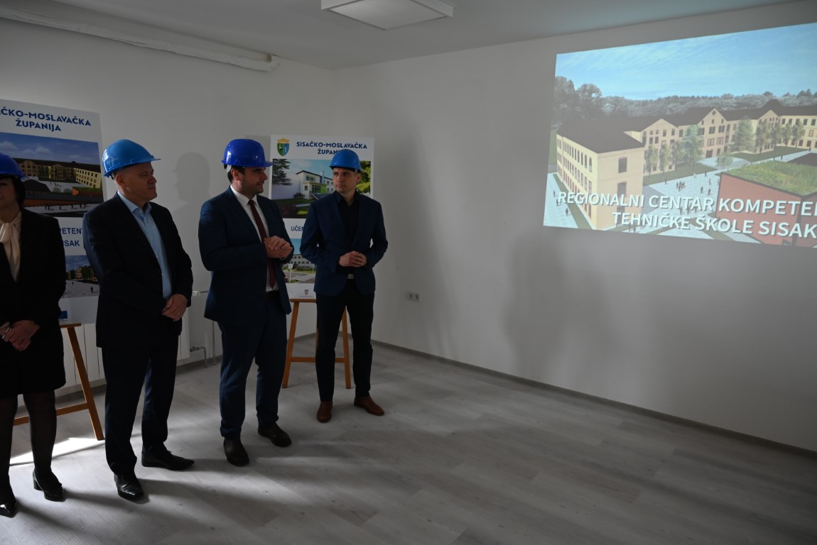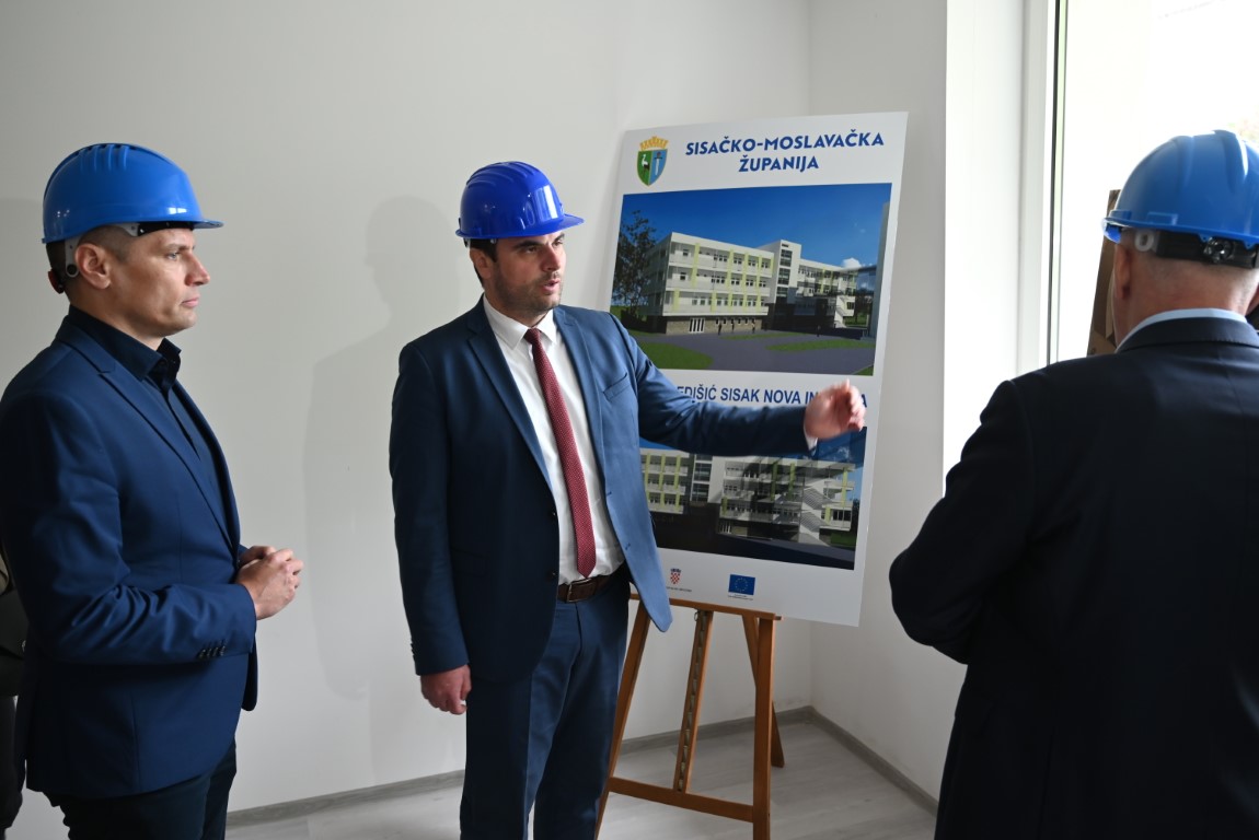 Gradilište učeničkog doma u Sisku obišli su u utorak, 9. svibnja 2023. godine župan Ivan Celjak i potpredsjednik Vlade RH i ministar prostornog uređenja, graditeljstva i državne imovine Branko Bačić.