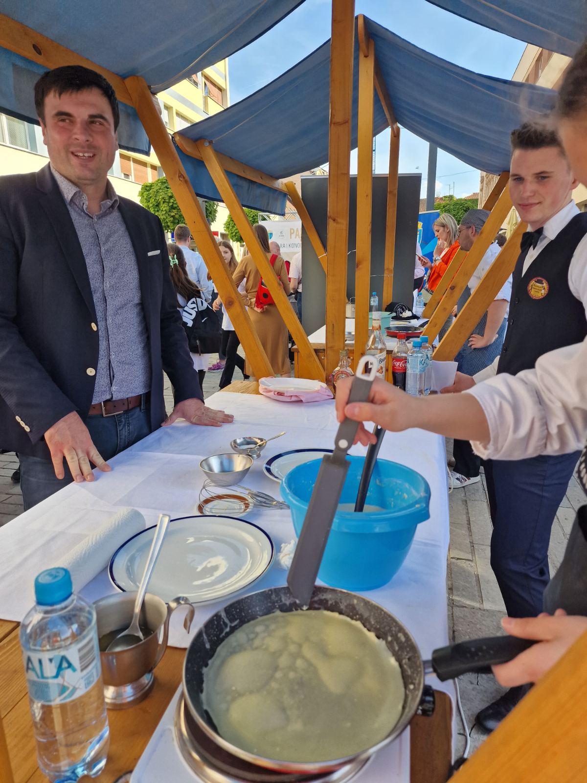 „Sisačko-moslavačka županija, u suradnji s Vladom RH, obnavlja zgradu stare Strukovne škole koju ćemo prenamijeniti u učenički dom kapaciteta od 50 do 60 učenika. Radovi su u završnoj fazi, vrijednost ovog projekta je 1,6 milijuna eura. Na ovoj mikrolokaciji obnavljamo i zgradu bivše vojarne, a vrijednost tog projekta je oko 21 milijun eura i tamo uspostavljamo Regionalni centar kompetentnosti Tehničke škole Sisak. Za centar smo nabavili i najmoderniju opremu kako bi naši učenici dobili najbolje obrazovanje iz područja elektrotehnike i računarstva. U ovoj ulici, dolje niže, imamo još jednu staru zgradu Strukovne škole, a tu zgradu obnavljamo u obrazovne svrhe u kojoj ćemo obrazovati sportaše. Predviđena je dvorana za trening, teretana i unutarnji bazen s otporom. Iznad ove ulice obnavljamo i zgradu bolnice. Pri kraju je konstruktivna obnova zgrade nove interne, obnavlja se zgrada stare interne, pedijatrije, citologija, patologija, gradi se zgrada bolničke kuhinje, za desetak dana počinje obnova bolničke ljekarne i psihijatrije“, izjavio je župan Celjak.