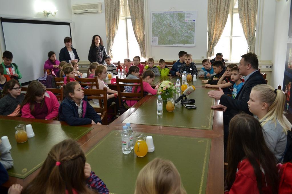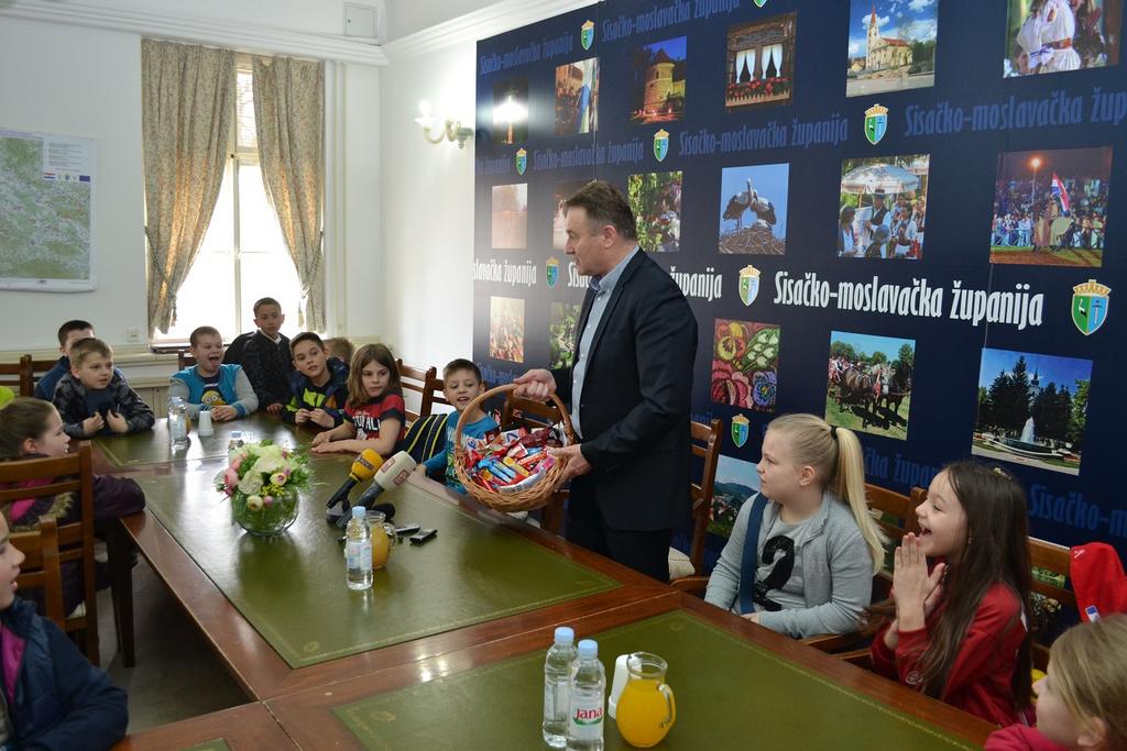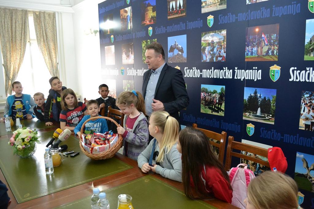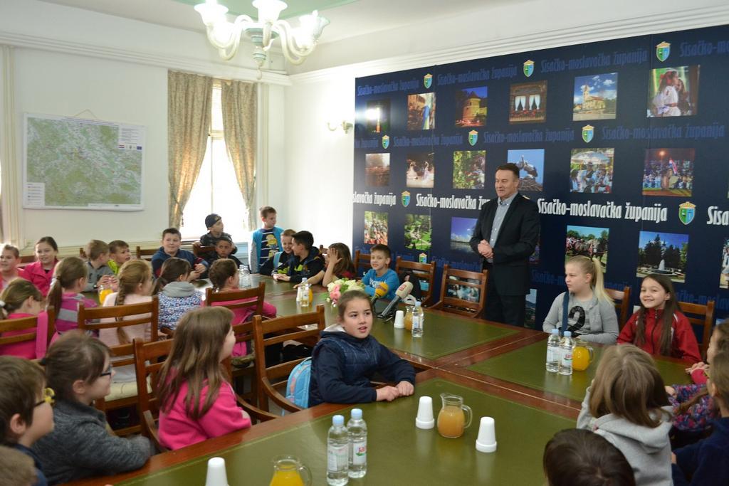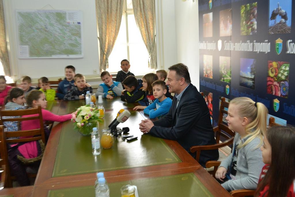 U neposrednom razgovoru, razmjeni informacija učenici su saznali kako se postaje županom, koliko je godina star Ivo Žinić, je li mu teško na poslu i koje mu je radno vrijeme, ali i upoznali župana sa svojim znanjem o gradu Popovači, Sisku, Glini, cijeloj županiji.