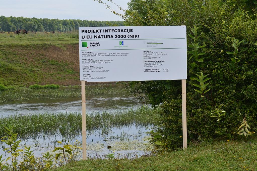 Projekt „Izgradnja mosta Greda-Ljubljanica na rijeci Odri“ prepoznat je kaoizuzetno važan segment ulaganja u infrastrukturu koja direktno doprinosi očuvanju biološke vrijednosti ovog međunarodno važnog NATURA 2000 područja te je odlučeno da se pristupi izradi pripremne dokumentacije, zatim ishođenju svih potrebnih dozvola. Ishođenje svih potrebnih dokumenata i suglasnosti odradila je Javna ustanova za upravljanje zaštićenim prirodnim vrijednostima Sisačko-moslavačke županije.