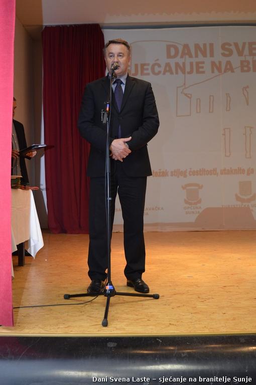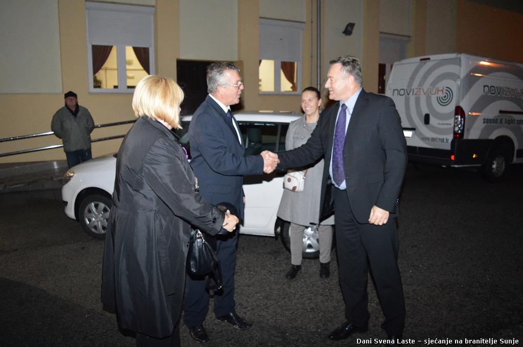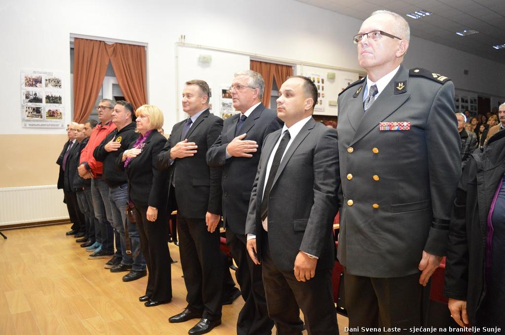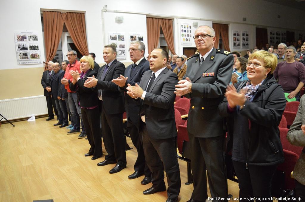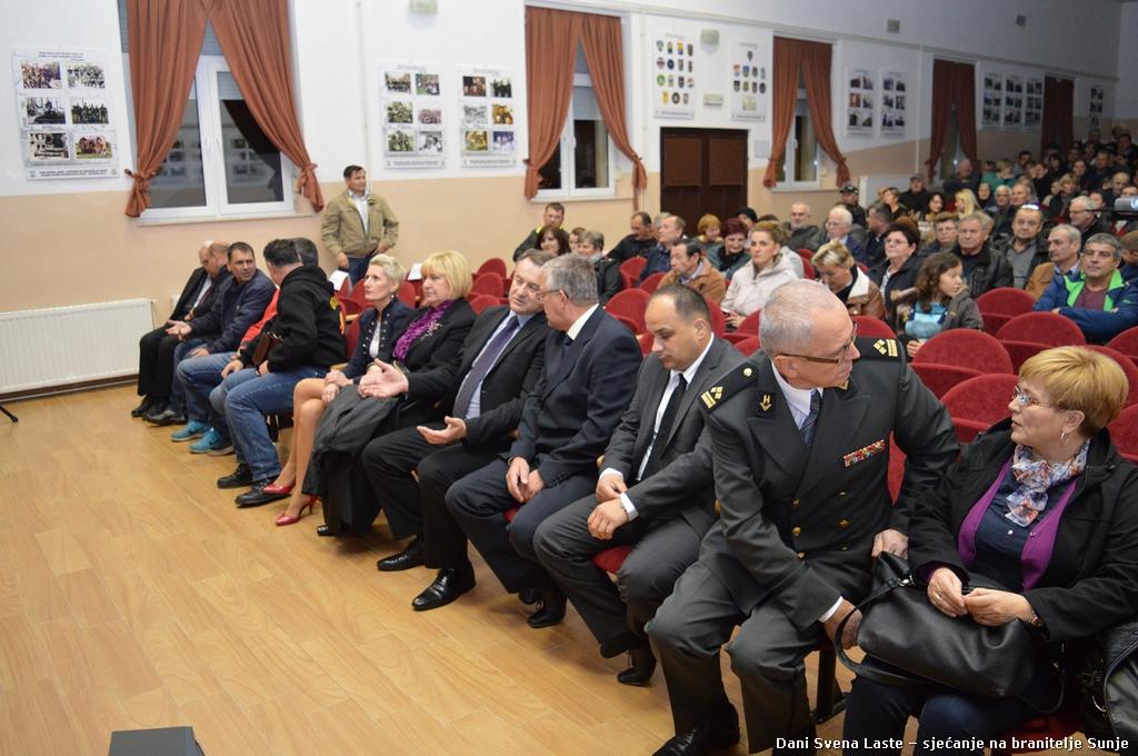 Središnjem dijelu manifestacije Svečanoj akademiji u čast branitelja Sunje koja je održana u Dvorani Svena Laste u društvenom domu, nazočili su župan Ivo Žinić, predsjednica Županijske skupštine Ivanka Roksandić i zamjenica župana Anita Sinjeri-Ibrišević.