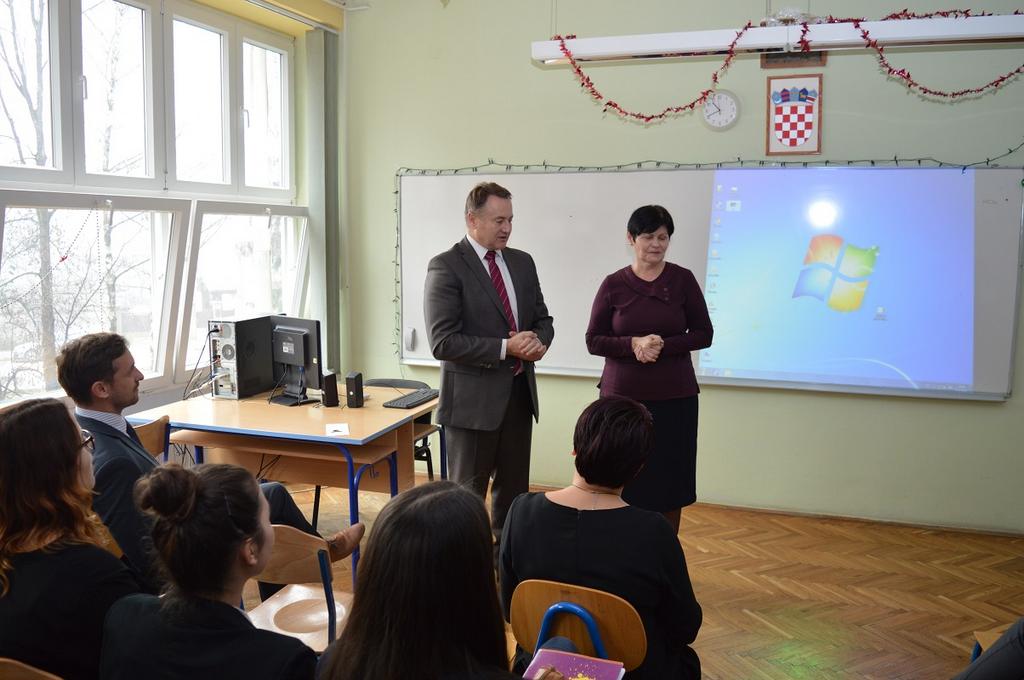 Nakon predavanja uporabi i obilaska učionice, gdje se u razgovoru s učenicima upoznao s djelovanjem vježbeničkih tvrtki, župan je, zajedno sa zamjenikom, pratio kratku prezentaciju na kojoj su ga učenici upoznali sa sudjelovanjem dviju Vježbeničkih tvrtki na Međunarodnom sajmu vježbeničkih tvrtki u Zagrebu i najavili izdavanje Gastro vodiča grada Siska.