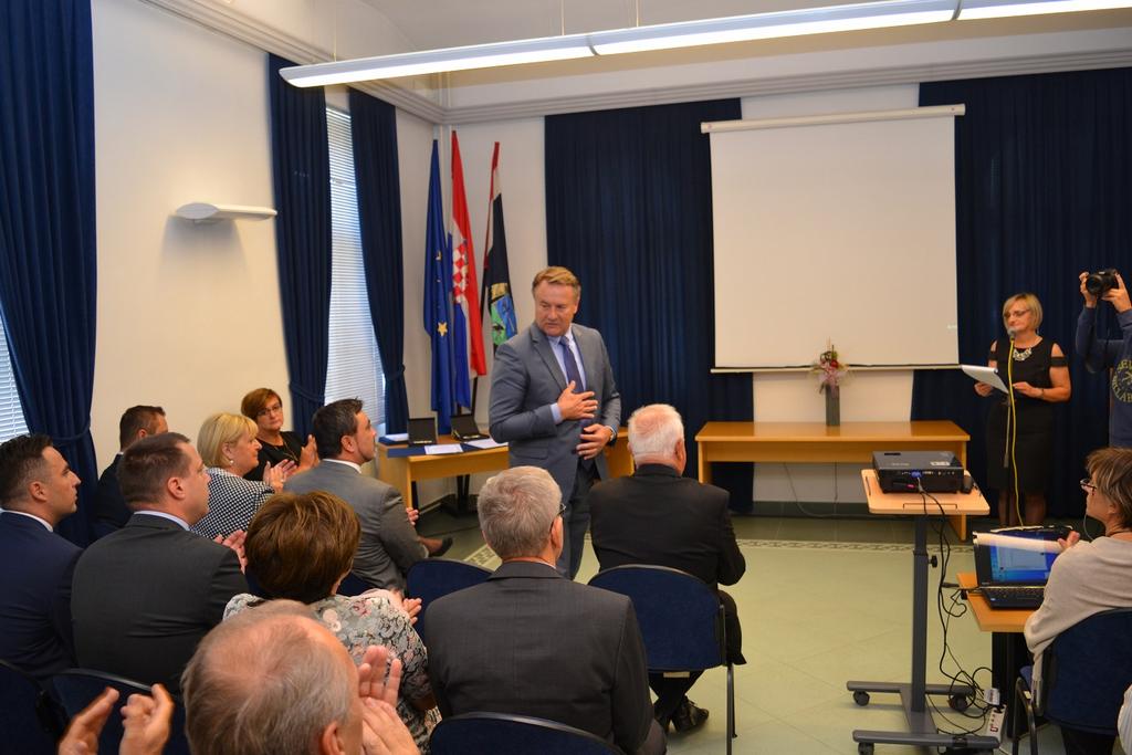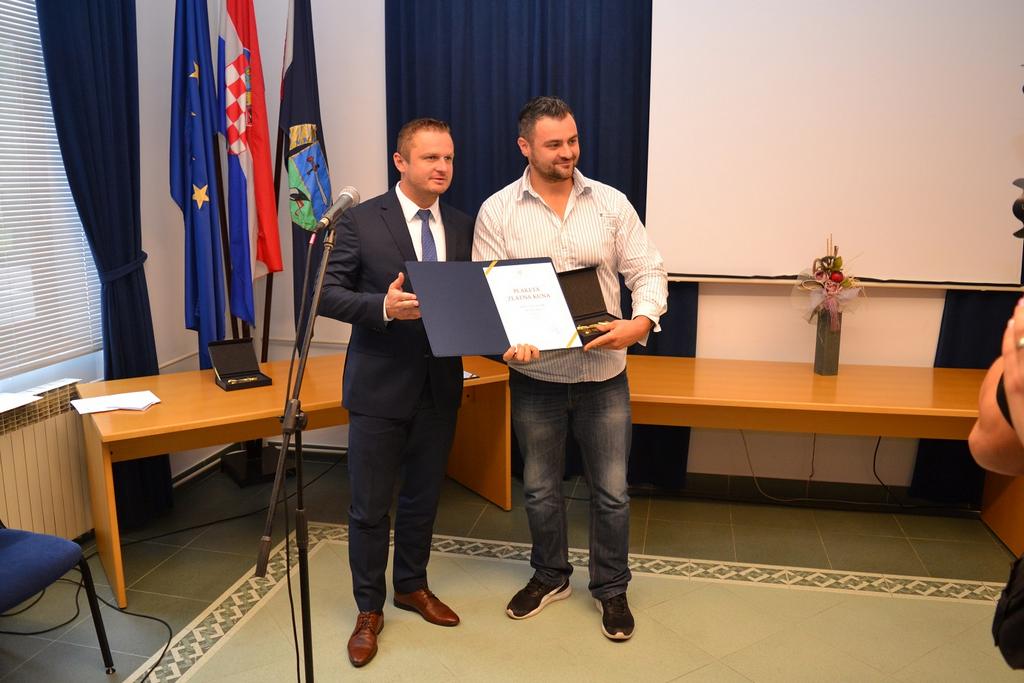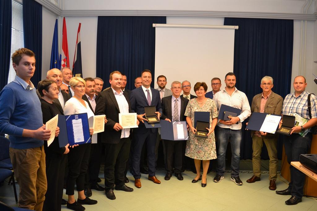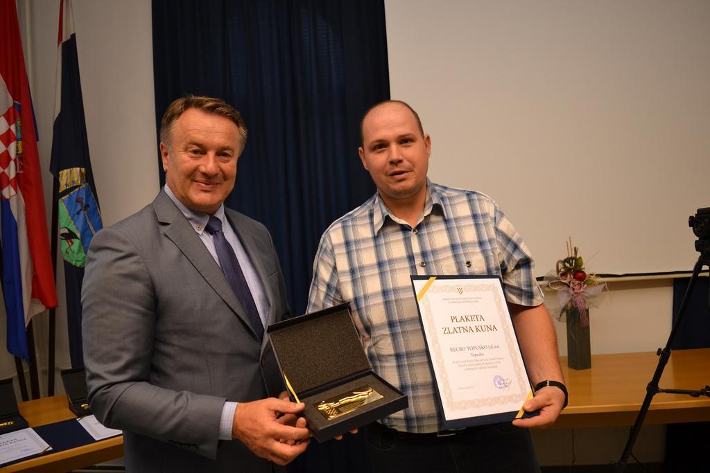 Župan je tvrtki RECRO TOPUSKO j. d. o. o. TOPUSKO uručio Zlatnu plaketu u kategoriji inovativnost za proizvod Recro bike service solarni stup, a zamjenik DRVNOM CENTRU GLINA d. o. o. GLINA zlatnu plaketu u kategoriji najuspješnije srednje trgovačko društvo.