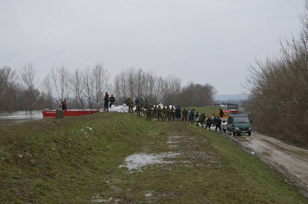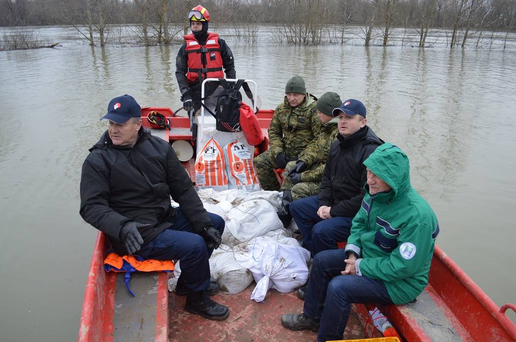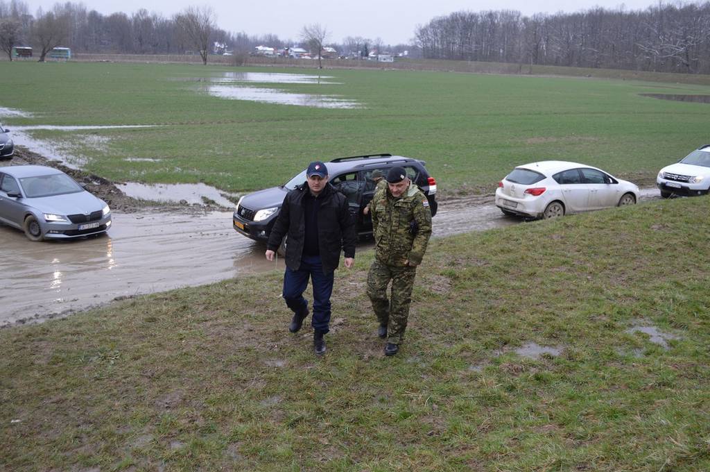 Po završetku sjednice Stožera župan i njegov zamjenik su, u pratnji zapovjednika Kopnene vojske brigadnog generala Siniše Jurkovića, čamcem otišli do Mlake, sela na području Općine Jasenovac u kojem se sva komunikacija, pa i prijevoz vreća s pijeskom za gradnju i utvrđivanje nasipa, što uspješno provode pripadnici Hrvatske vojske, odvija vodenim putem.